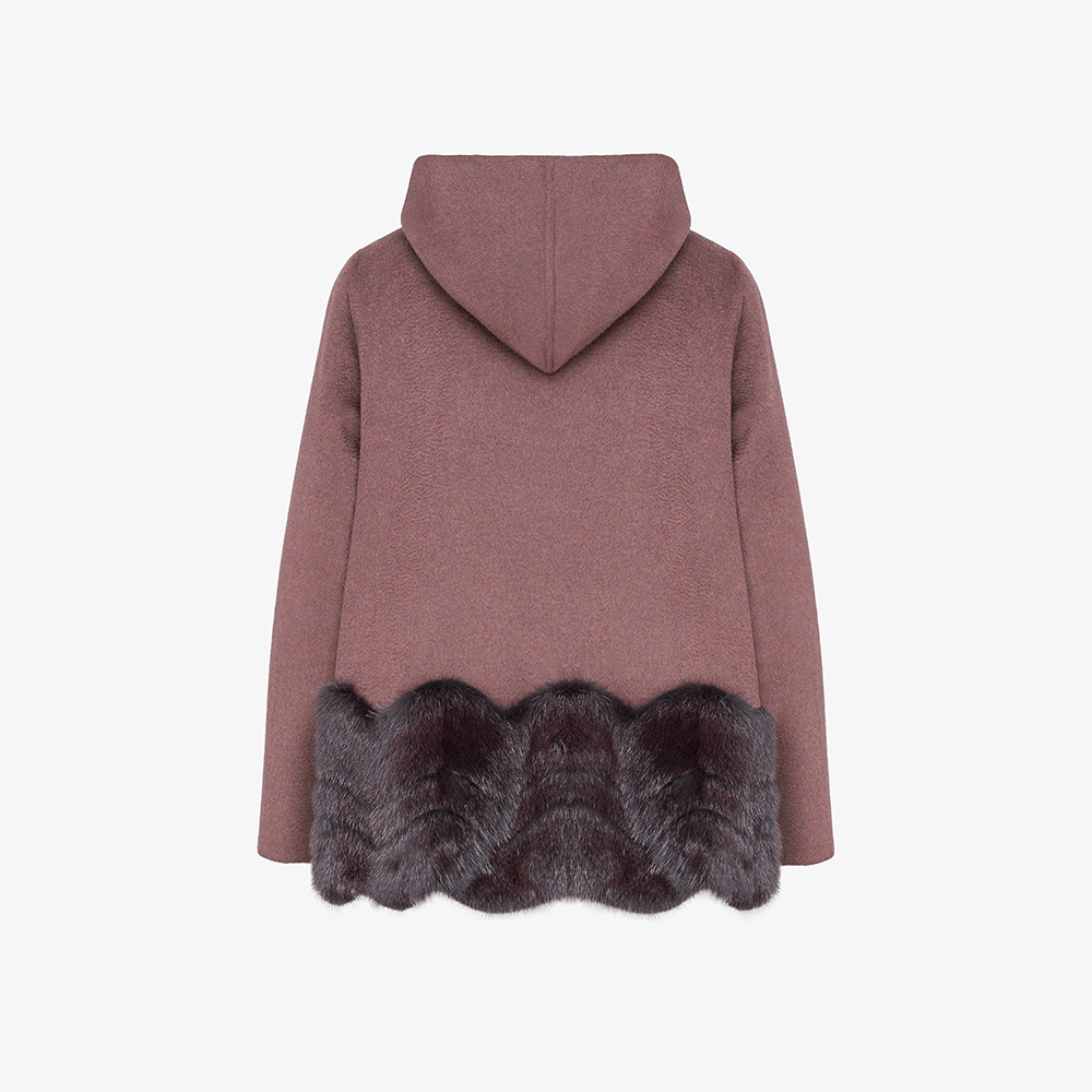 Cashmere coat with hood and mink trim, burgundy color, 70 cm