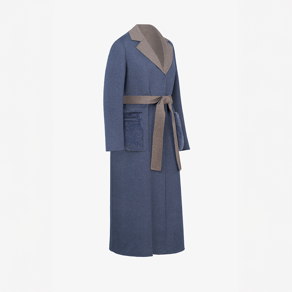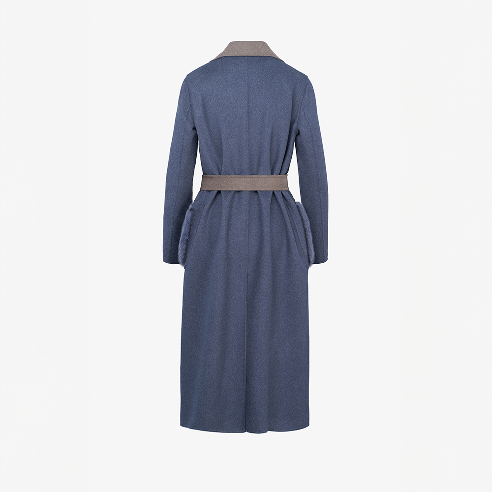 Cashmere coat with English collar and pockets in mink, blue, 120 cm