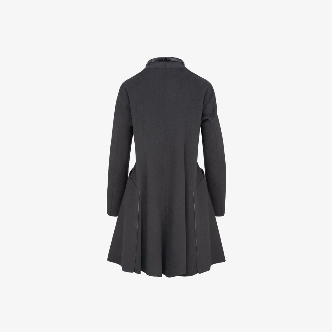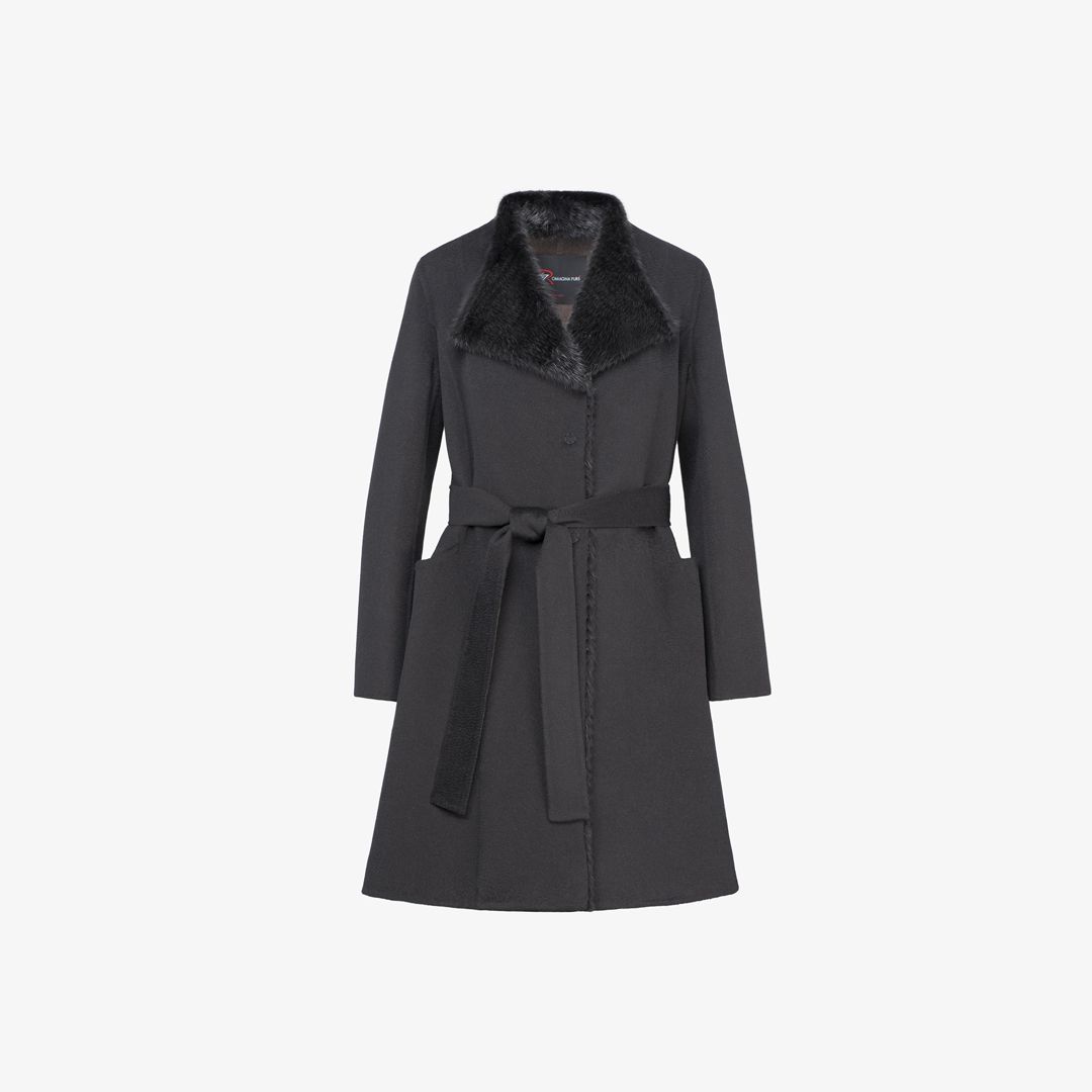 Short cashmere coat Waist belt Mink collar Full skirt Length: 90cm Black For more information, contact us on Whatsapp