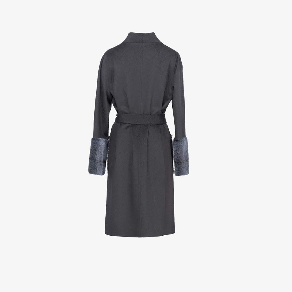 Cashmere coat, pockets, belt, mink details, black, blue, 100 cm