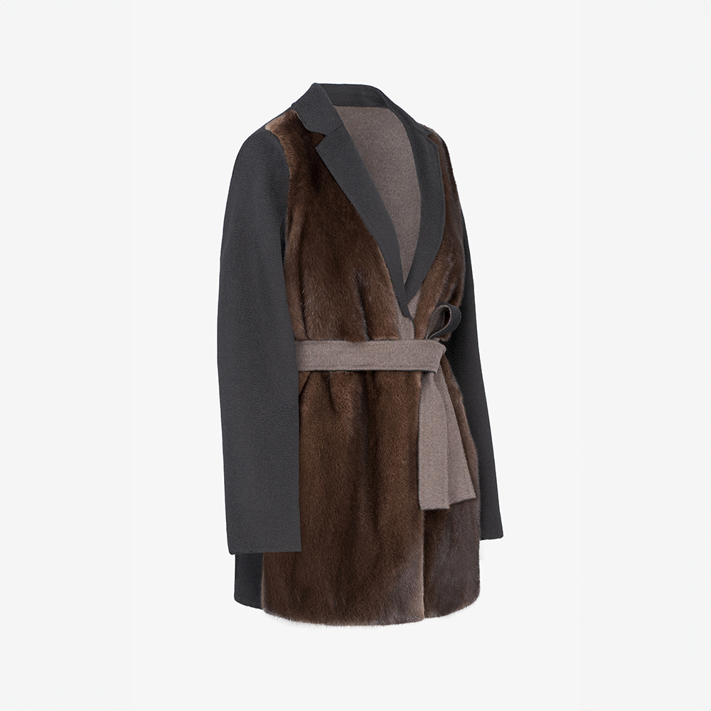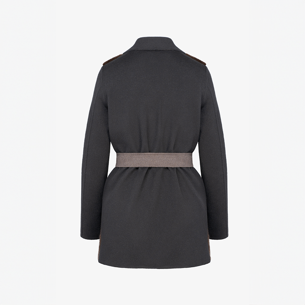 Loro Piana cashmere coat, mink trim, belt, black color, 75 cm