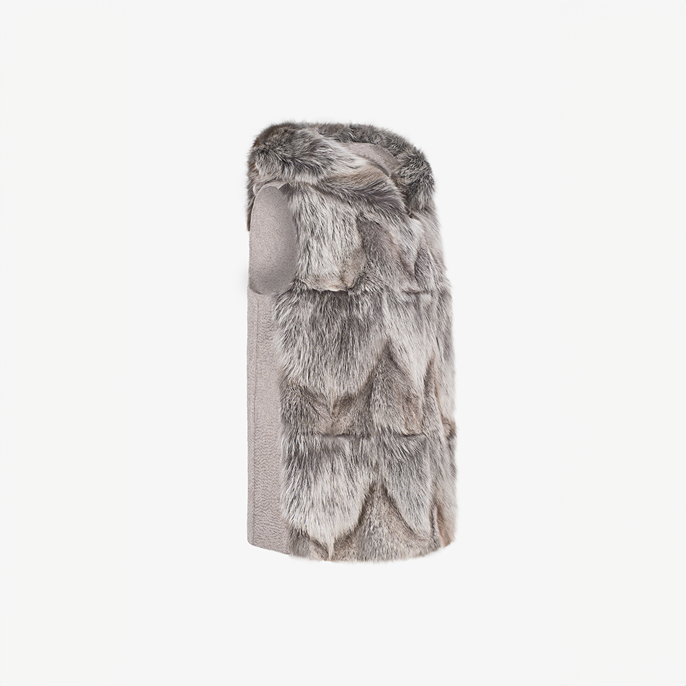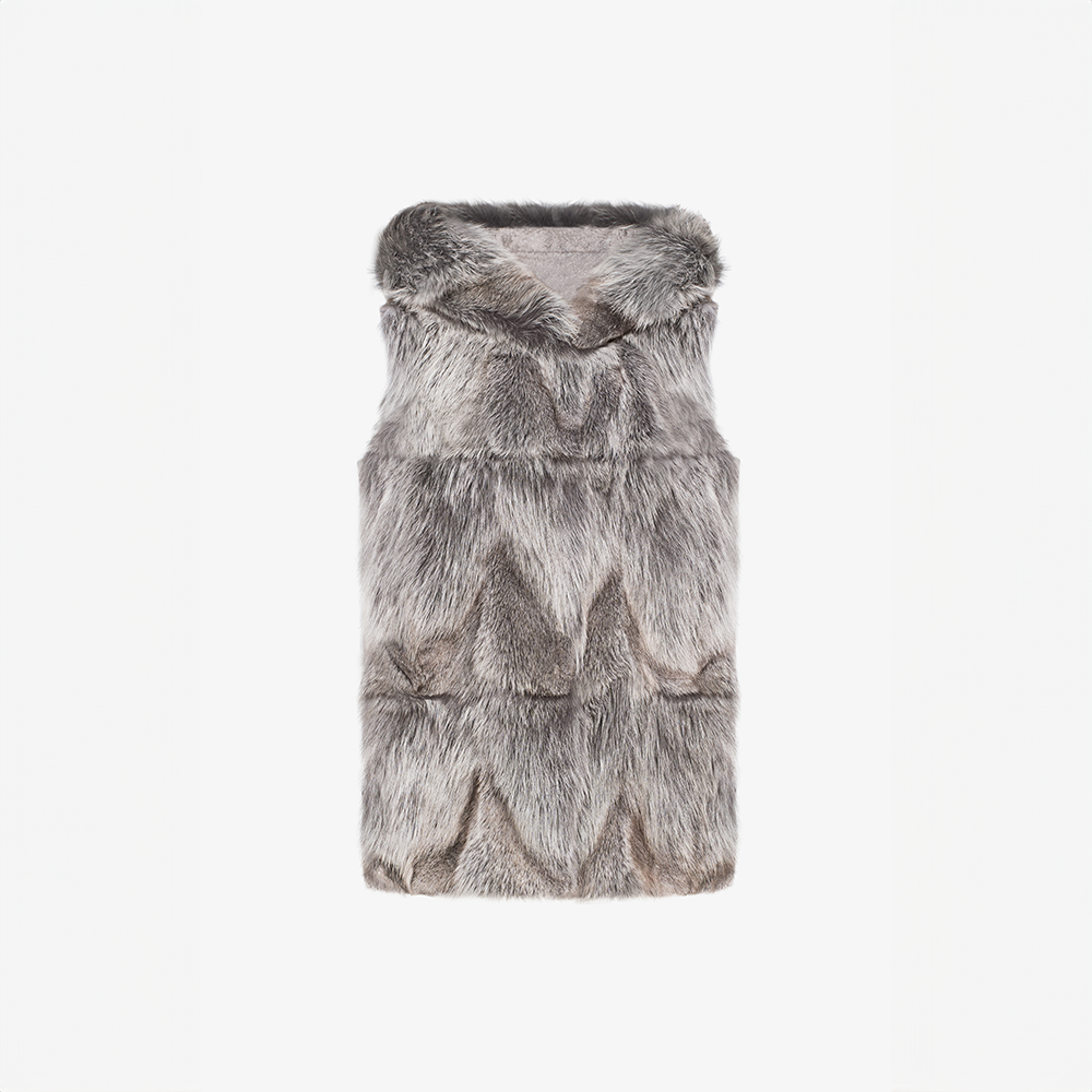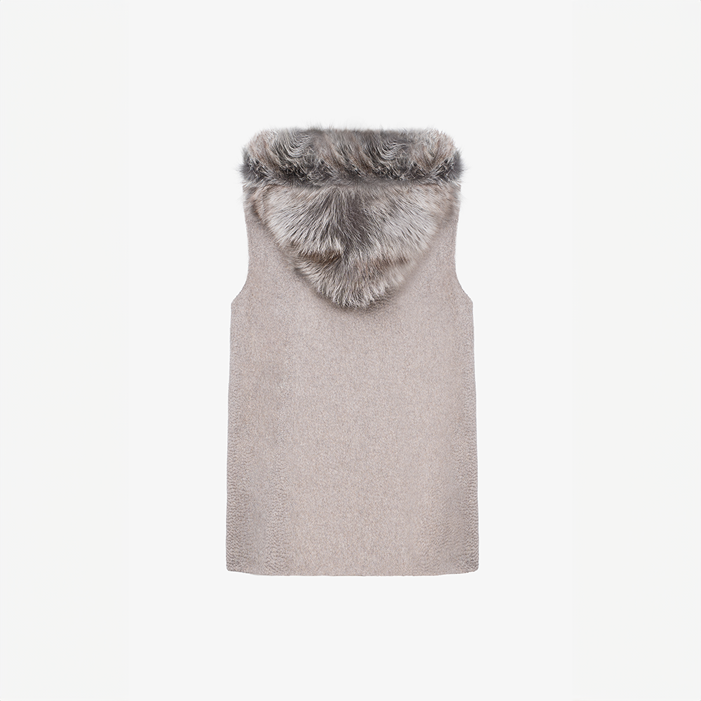 Cashmere vest with hood and patch fox trim, dove grey, 65 cm