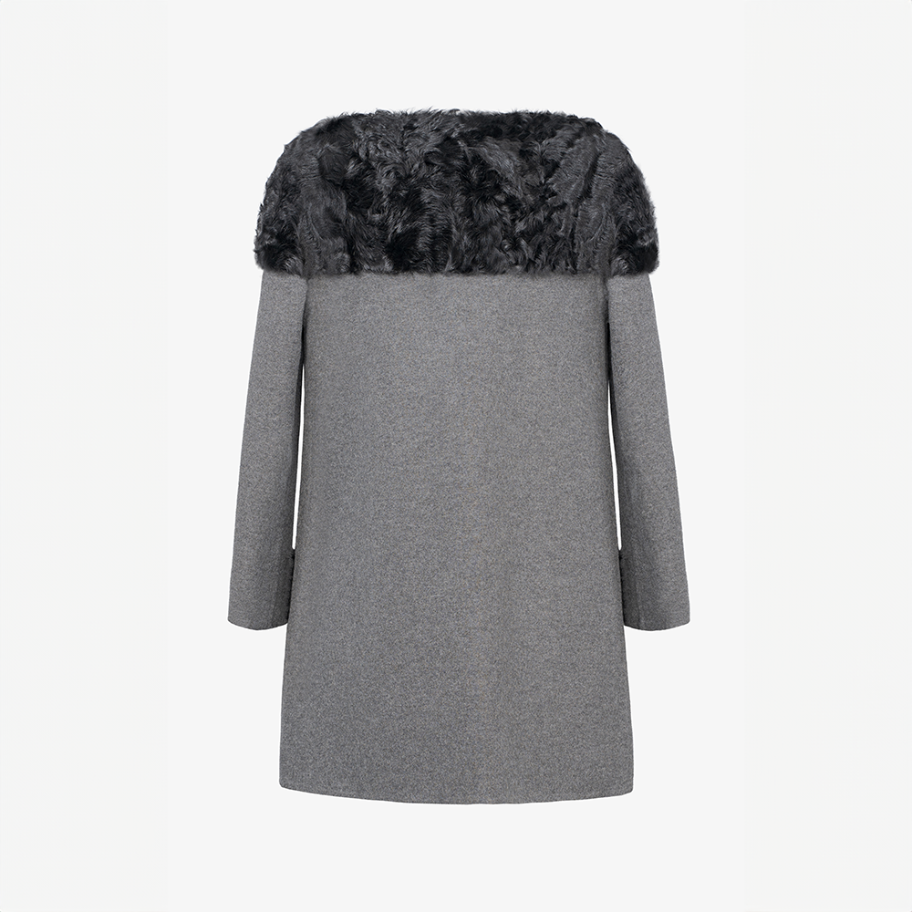 Collarless cashmere coat with details in Persian fur, grey, 80 cm