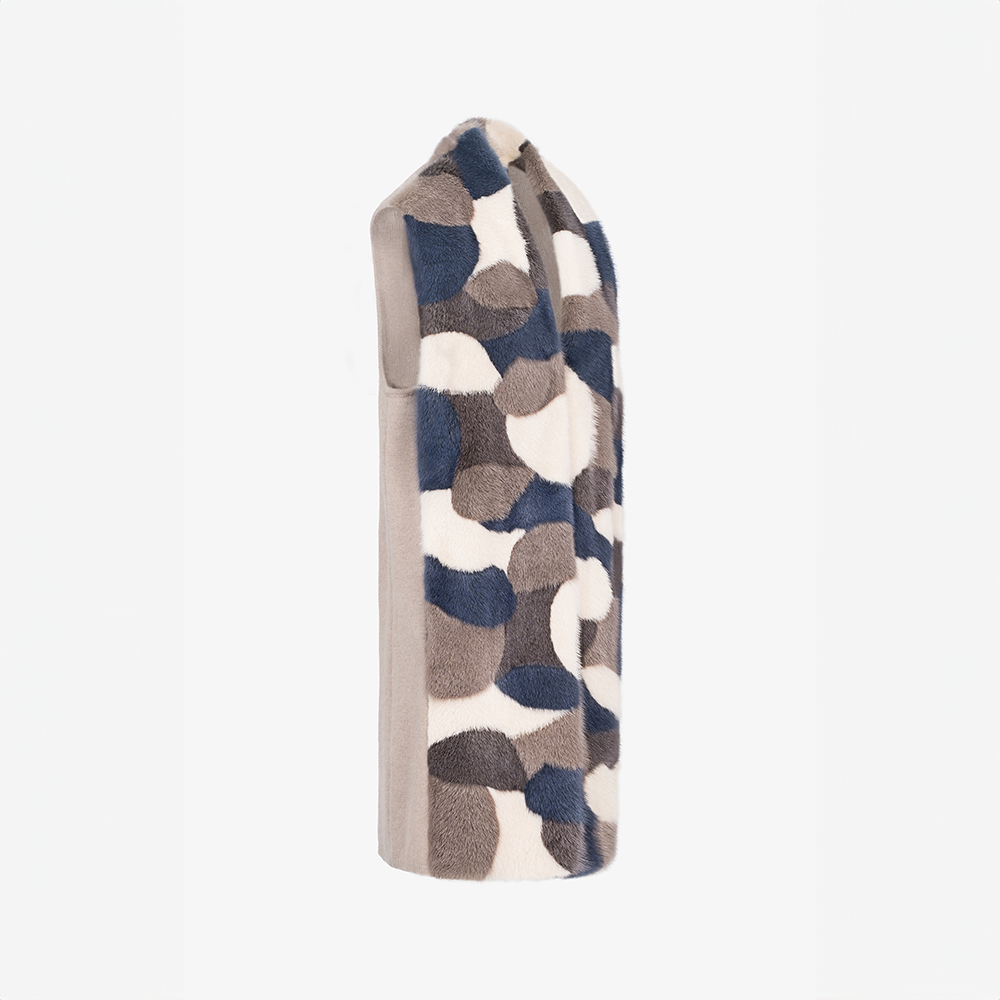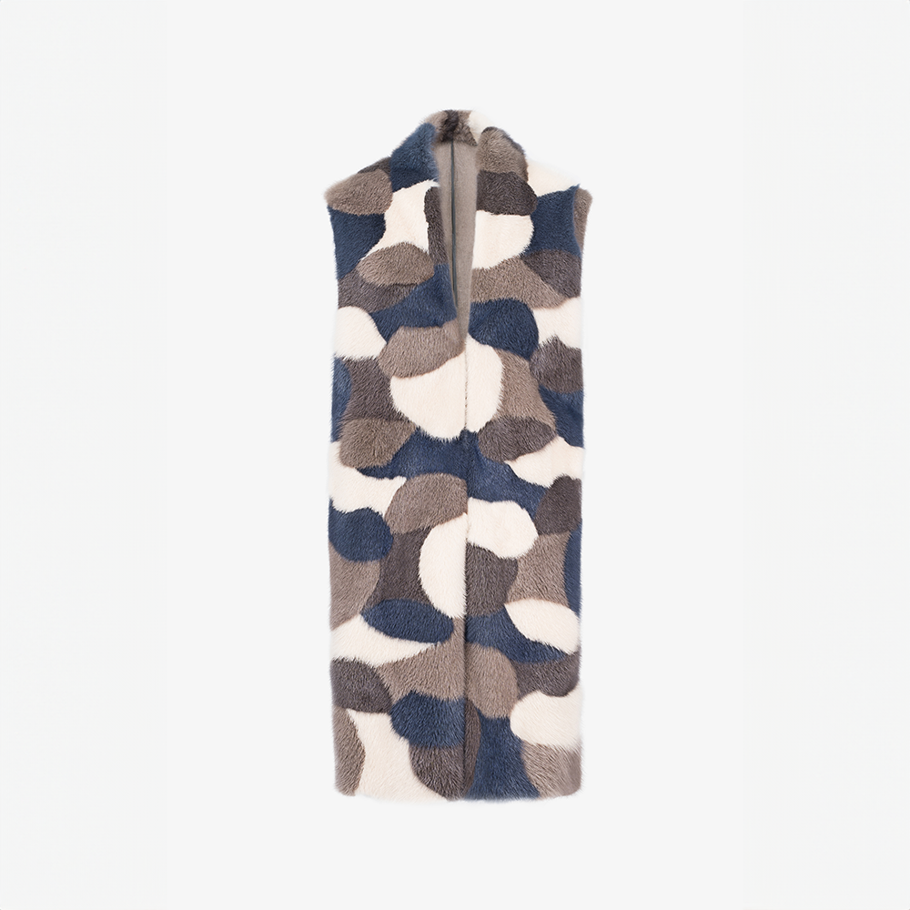 Loro Piana cashmere vest, collarless, mink trim, multicolor, 90 cm