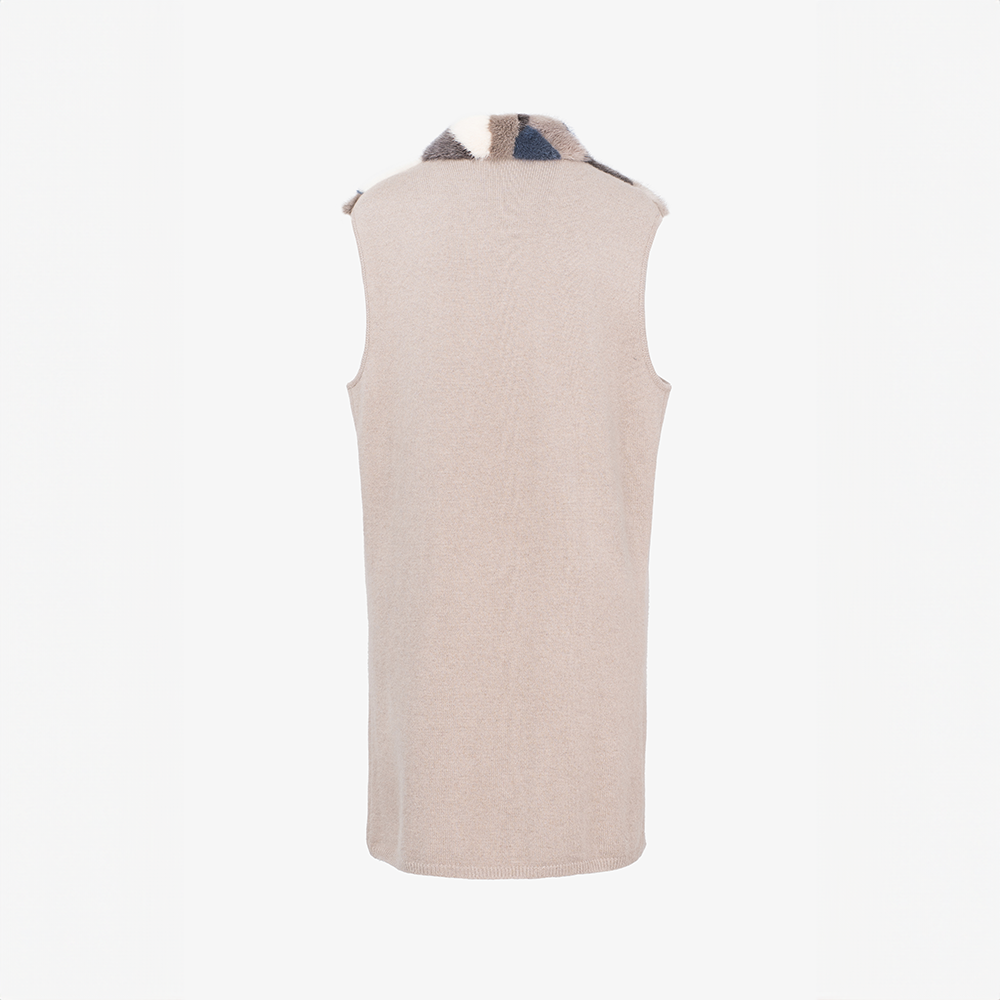 Сolllarless сashmere vest with mink trim, multicolored, 90 cm