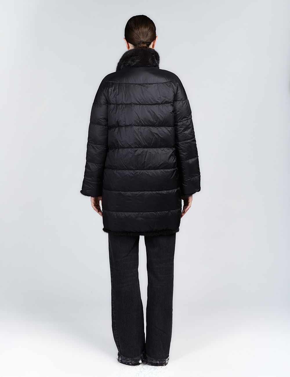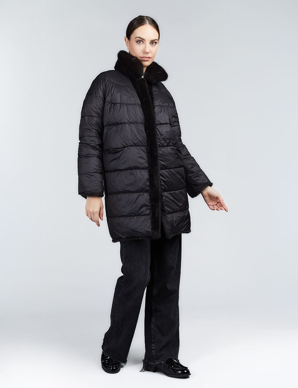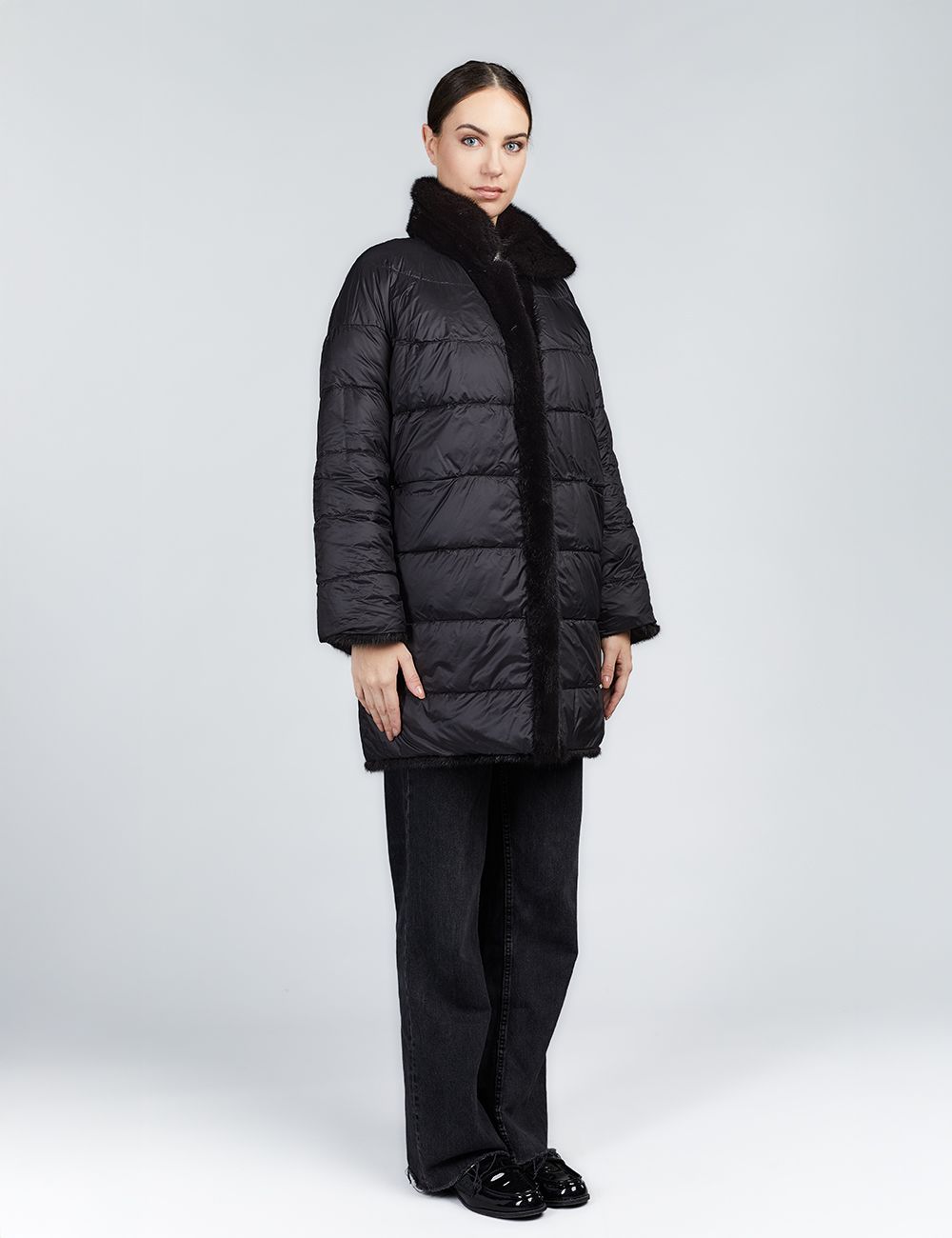 Reversible mink down jacket with high collar, multicolor, 85 cm