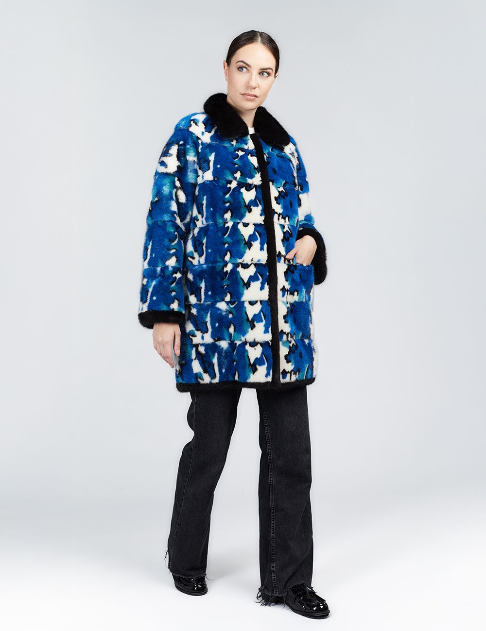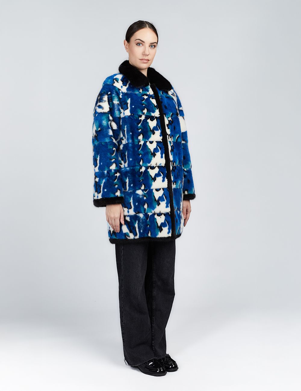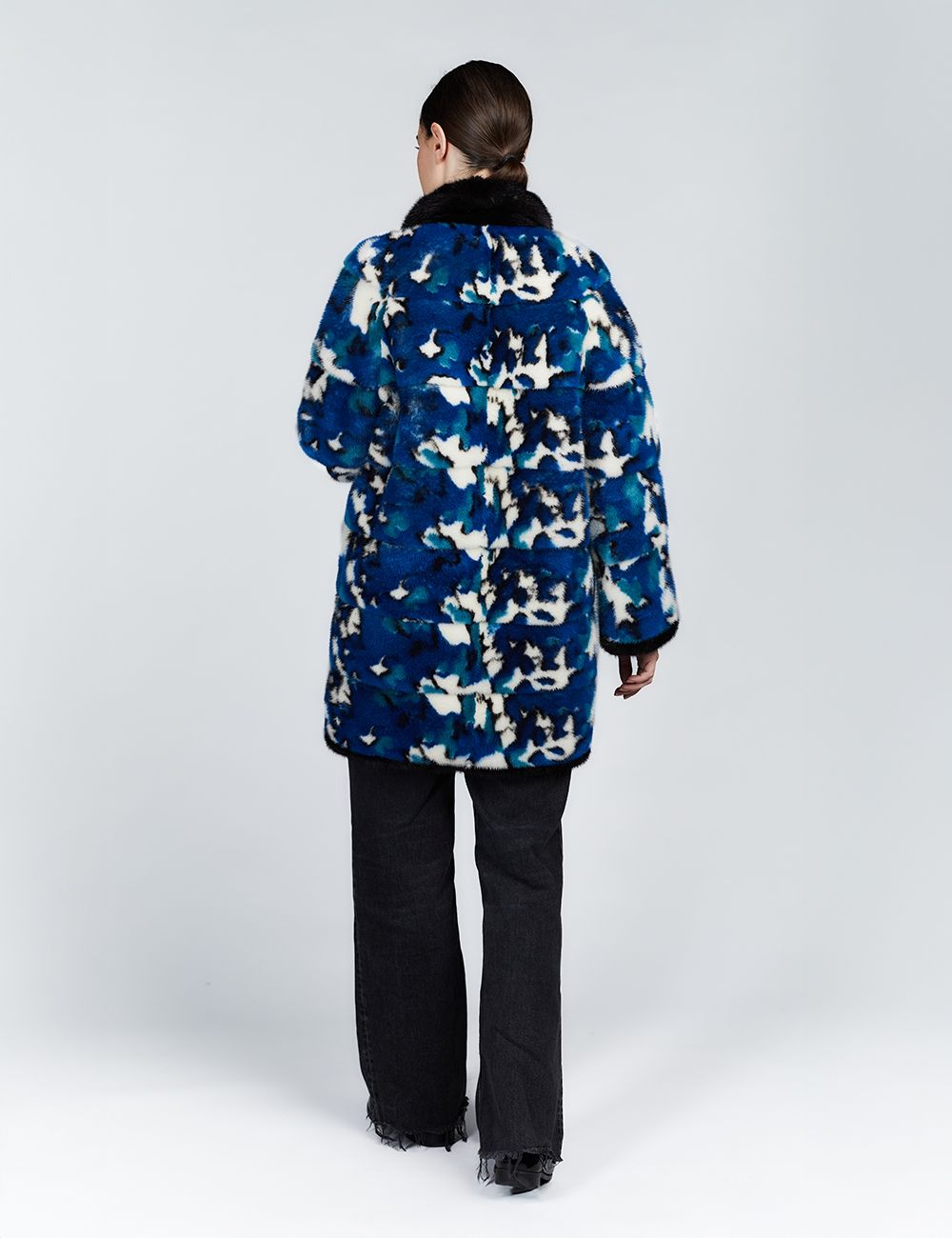 Reversible mink down jacket with high collar, multicolor, 85 cm