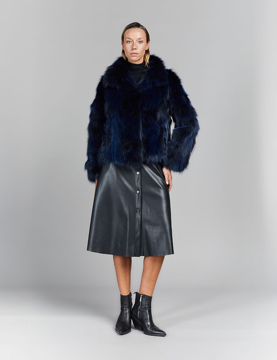 Fox jacket, high collar, hook closure, blue, 55 cm