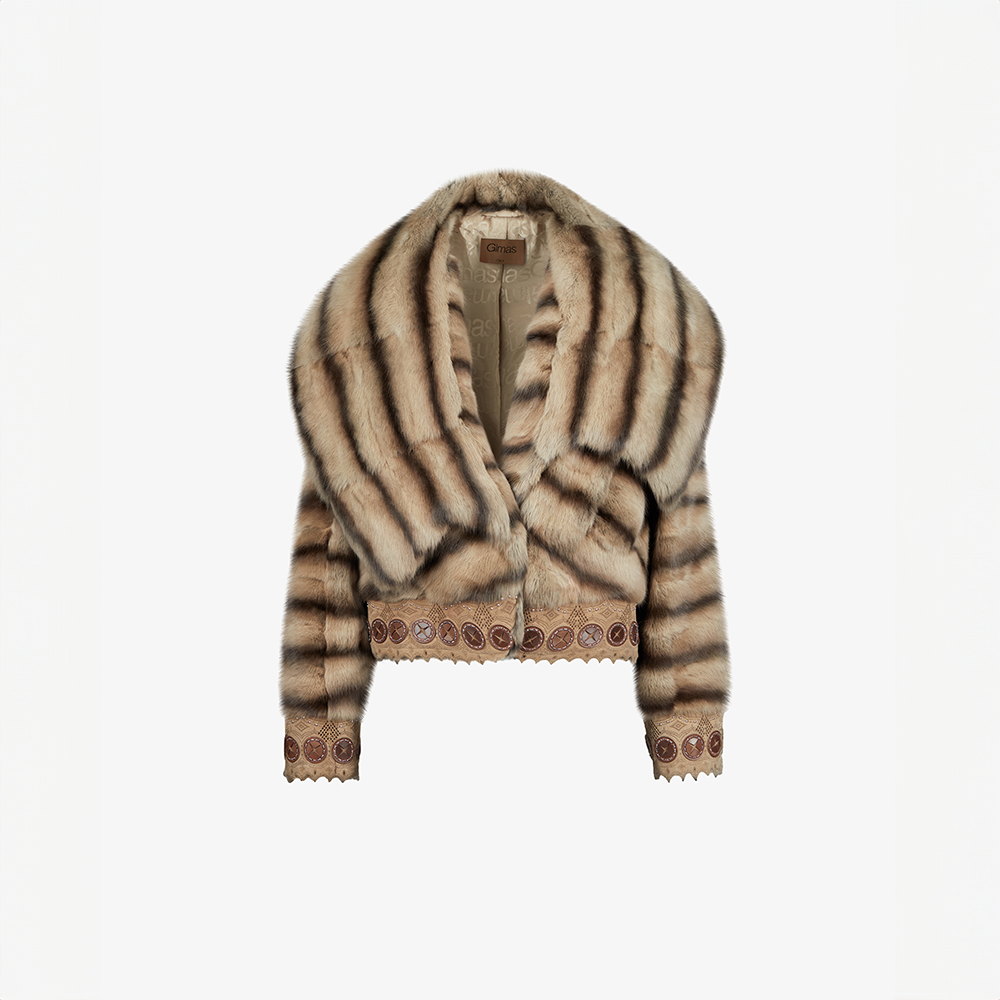 Short basic mink jacket with leopard print, beige color, 55 cm