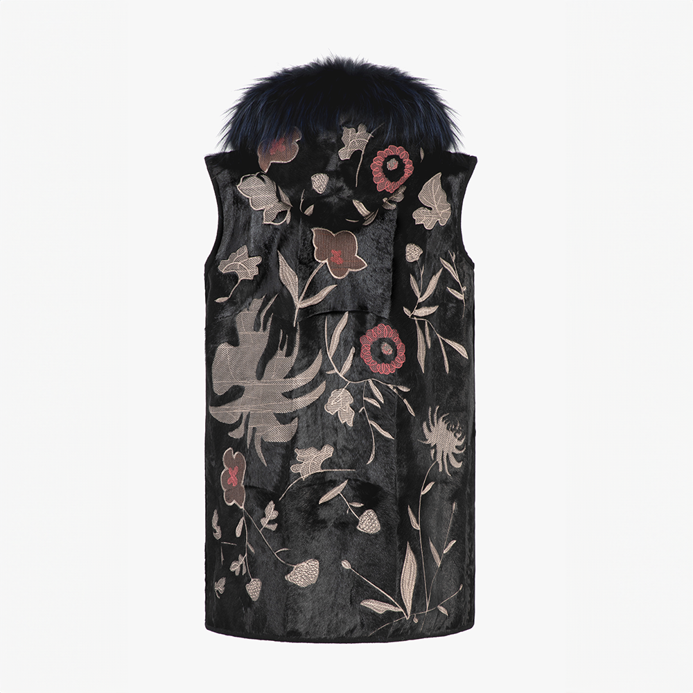 Persian vest, reversible, hood, floral pattern, black, 80 cm