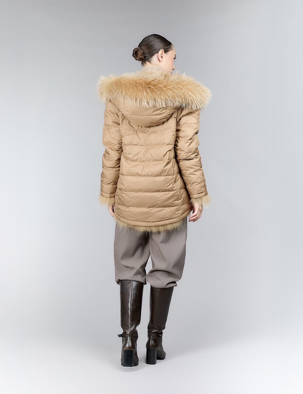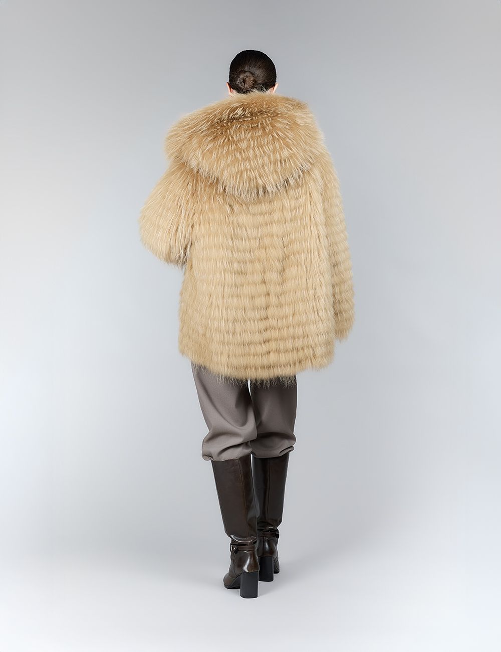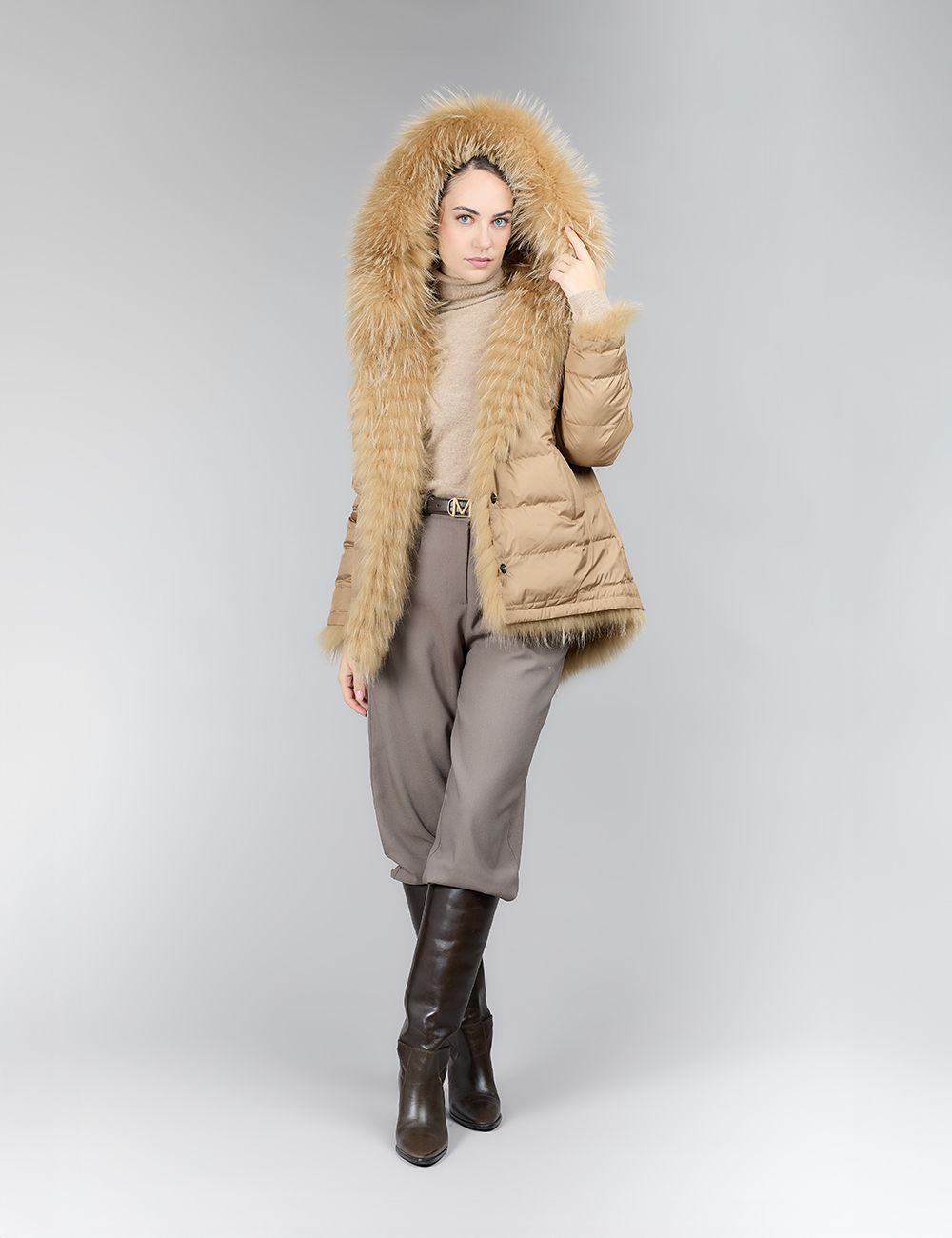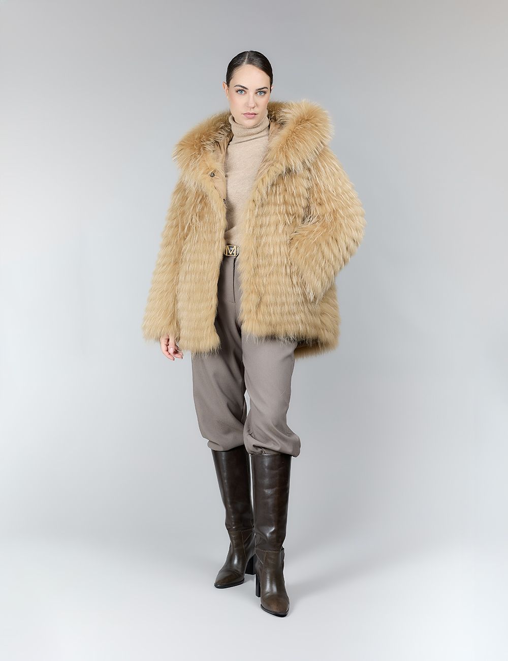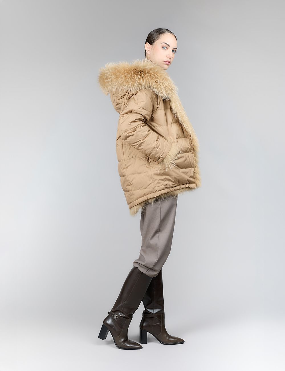 Giacca reversibile con cappuccio in pelliccia di procione, colore pastello, 80 cm