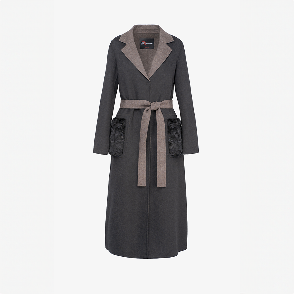 Nappa and mohair coat, reversible, collarless, green, 90 cm
