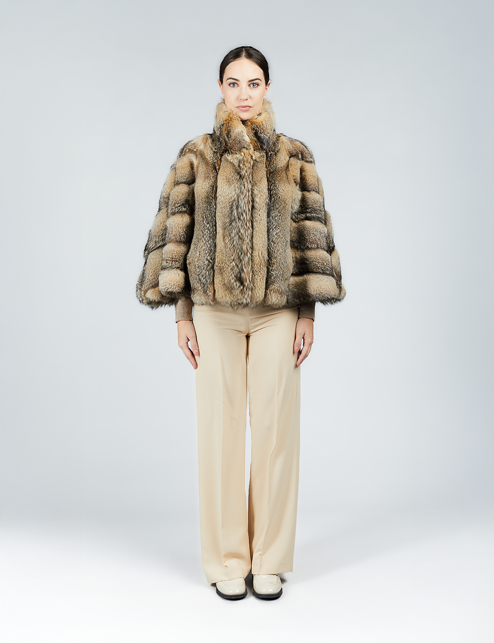 Veste réversible en fourrure de raton laveur et tissu, multicolore, 60 cm
