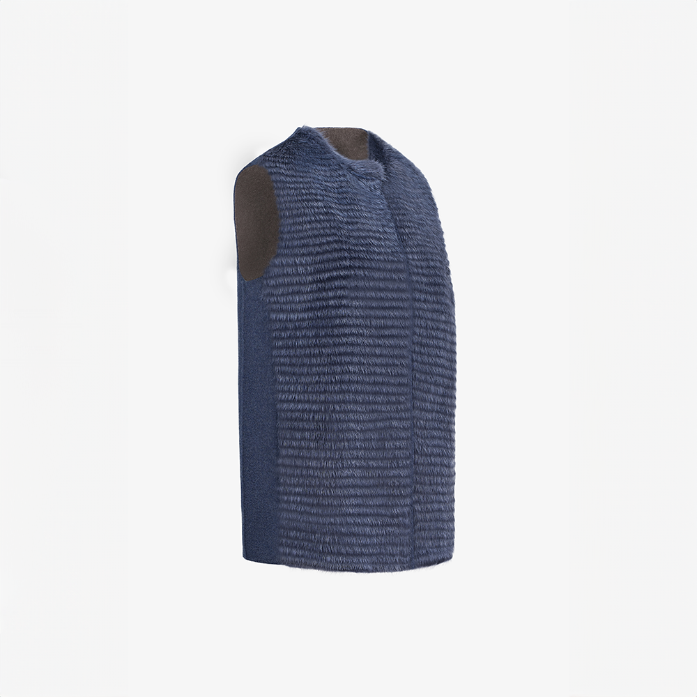 Gilet en cachemire Loro Piana, avec finitions en vison, bleu, 65 cm