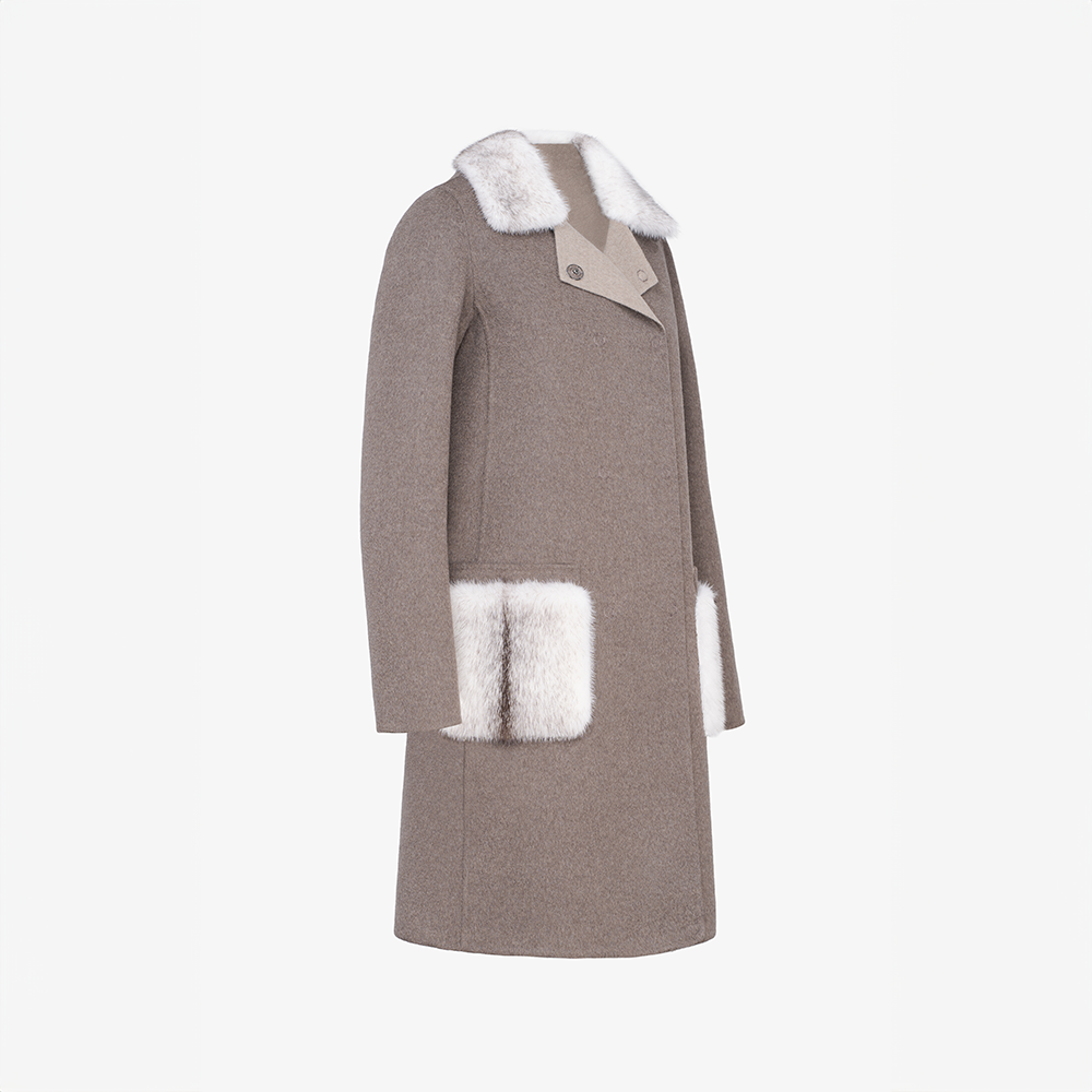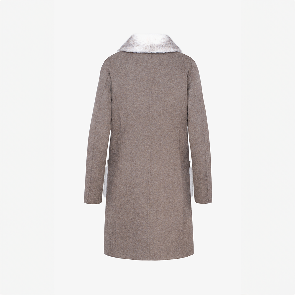 Cappotto en cachemire Loro Piana, col et poches en vison black cross, boue, 90 cm