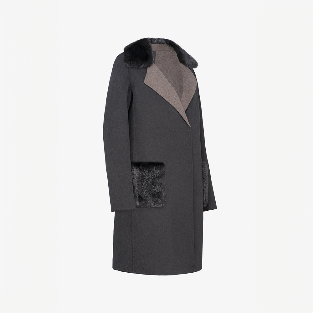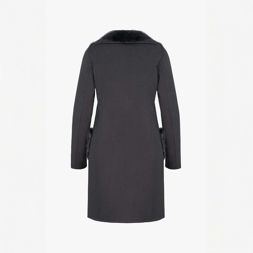Cappotto en cachemire Loro Piana, col et poches en vison, noir, 90 cm
