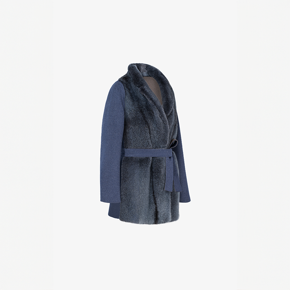Manteau en cachemire avec finitions en vison bleu de 75 cm.