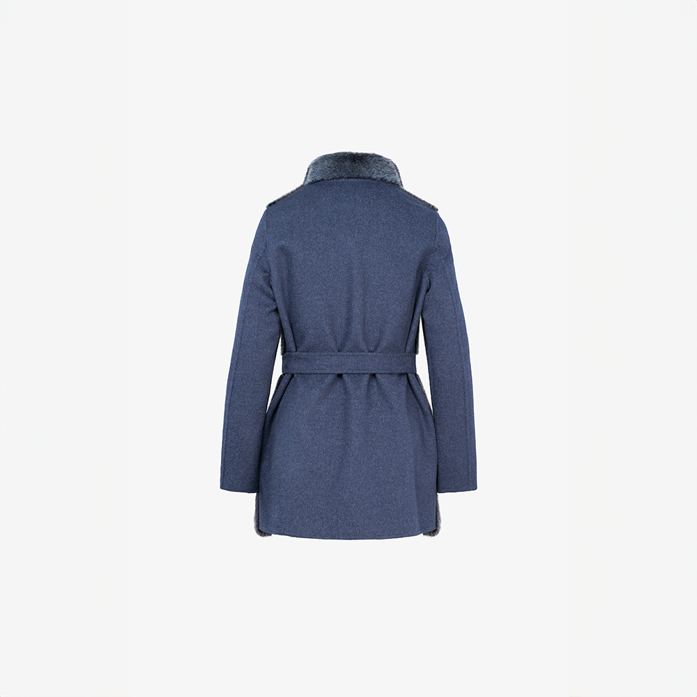 Manteau en cachemire Loro Piana, finitions en vison, ceinture, bleu, 75 cm