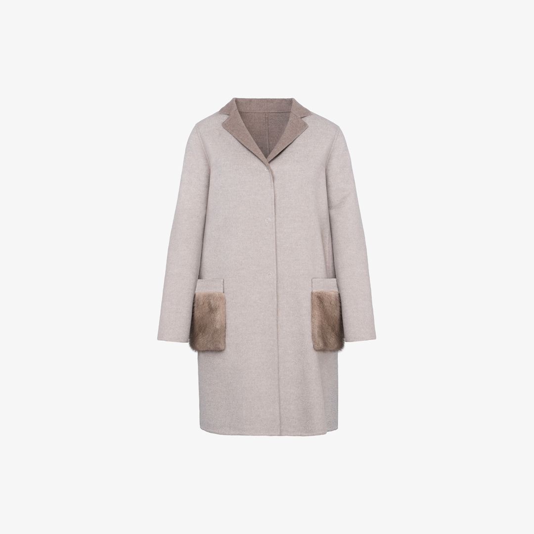 Manteau en cachemire avec poches en vison beige de 90 cm