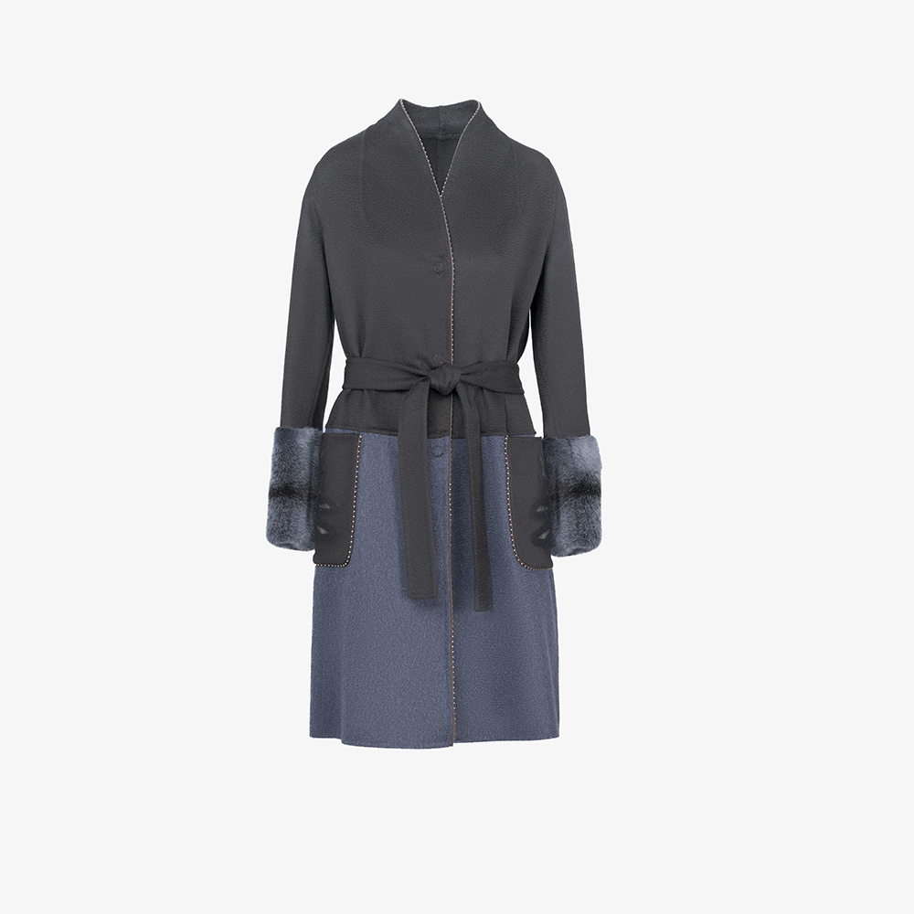 Gilet en cincillà naturel avec des insertions brodées de 50 cm.