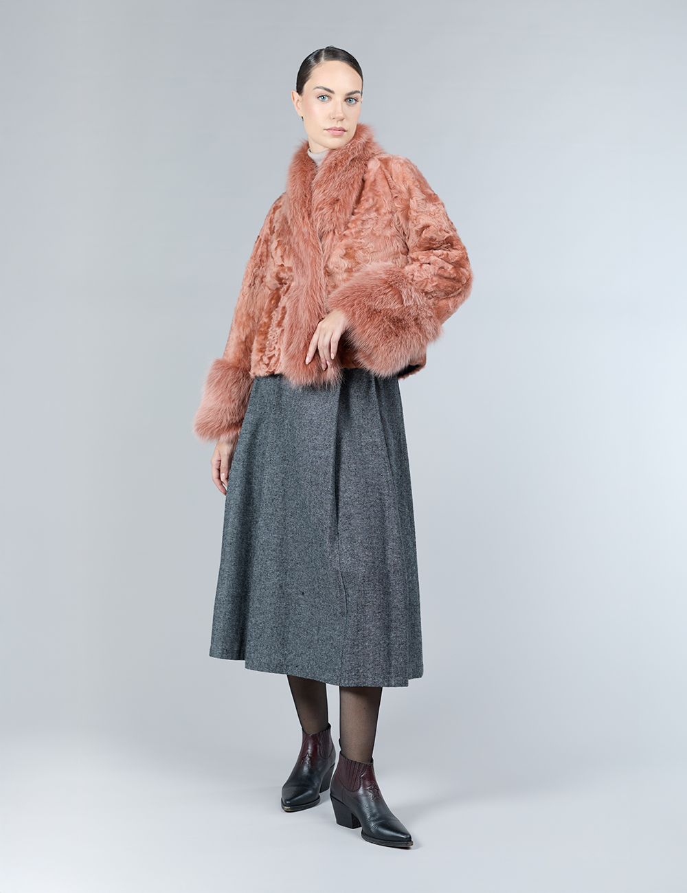 Veste courte en chinchilla avec capuche beige de 65cm.