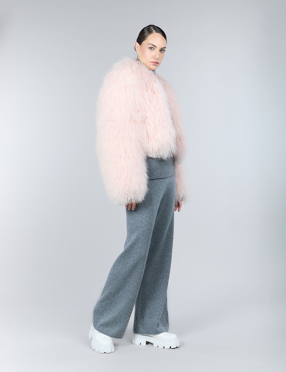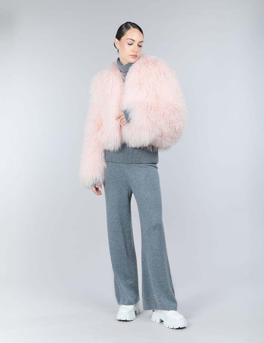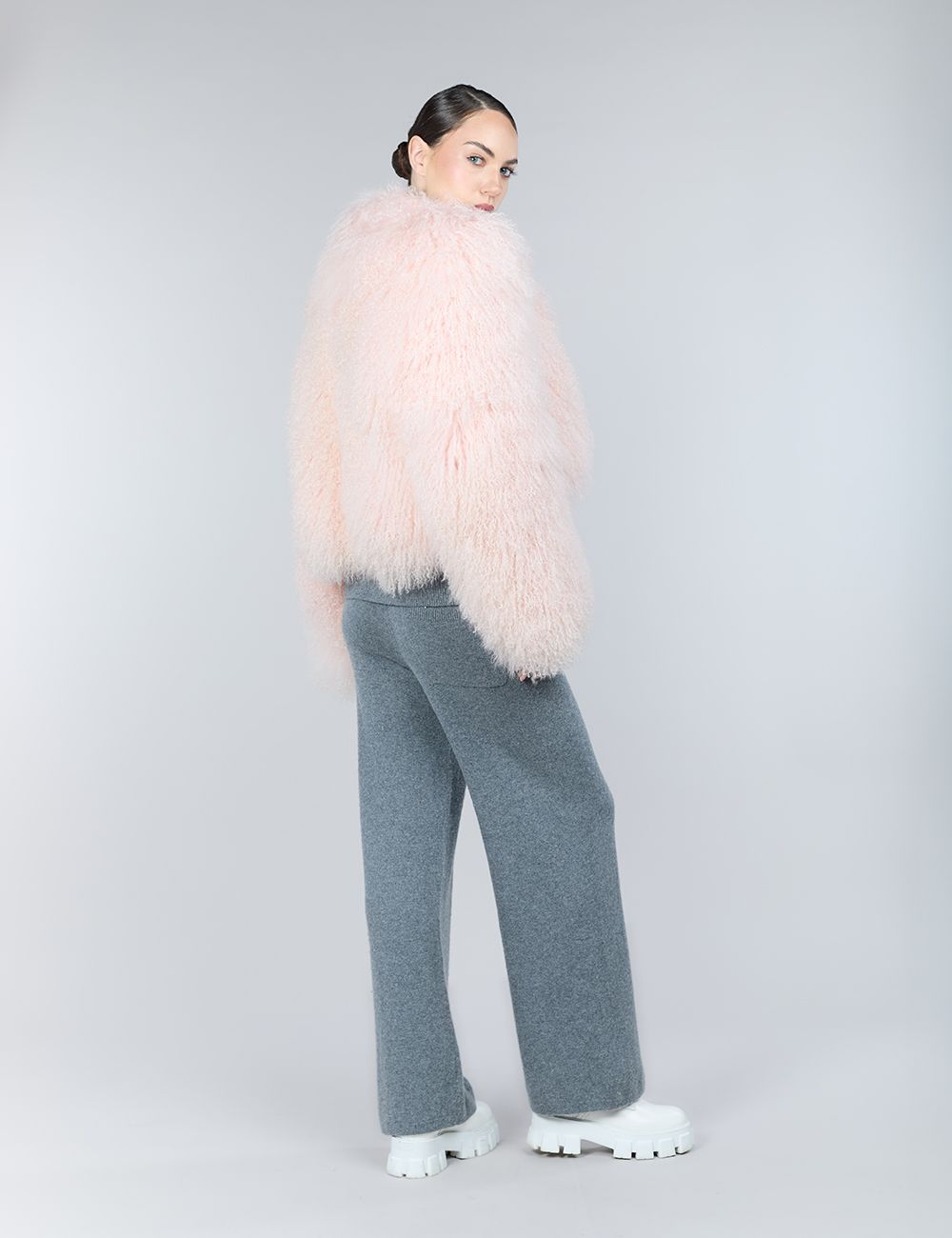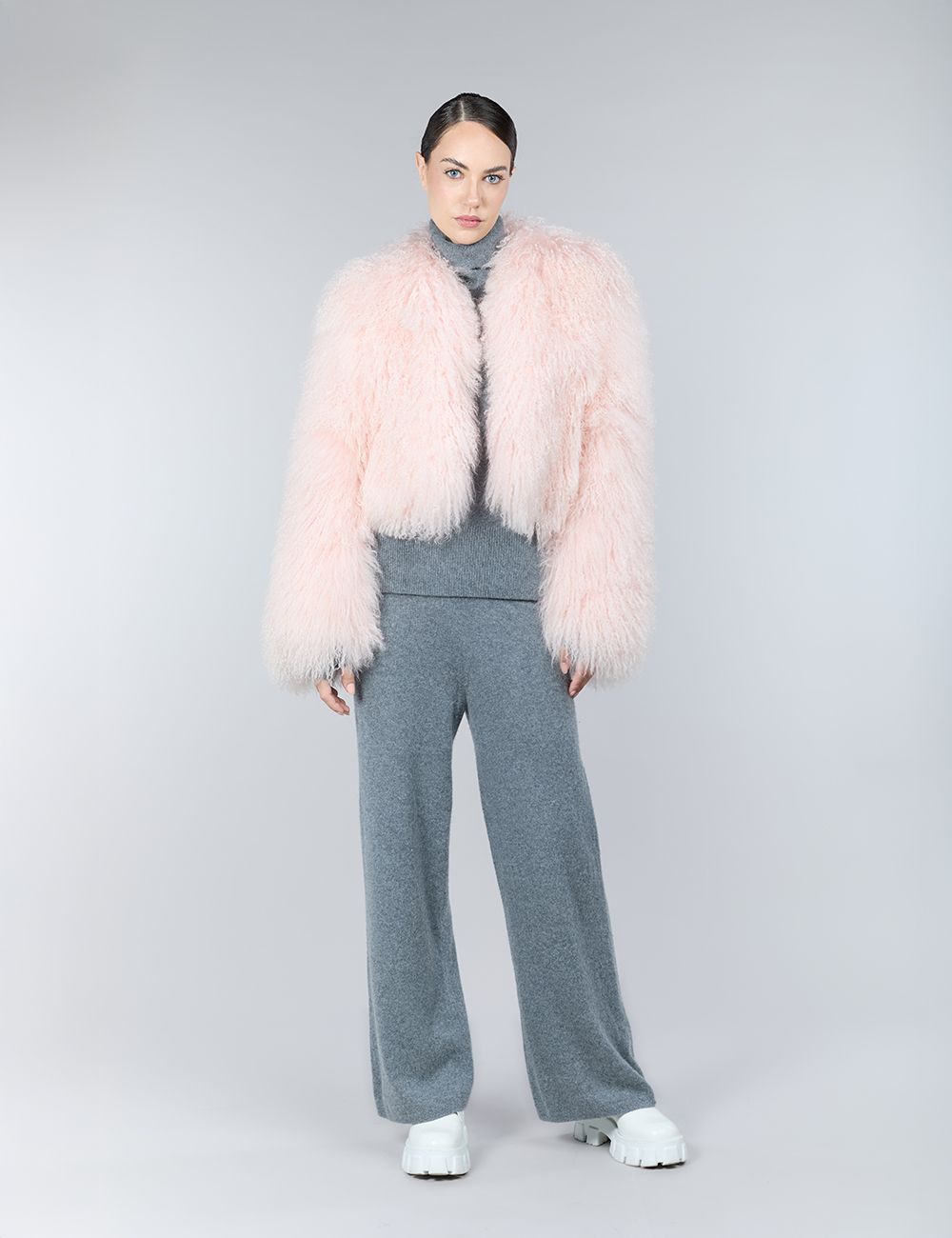 Bomber court en fourrure de Mongolie, rose, 45 cm