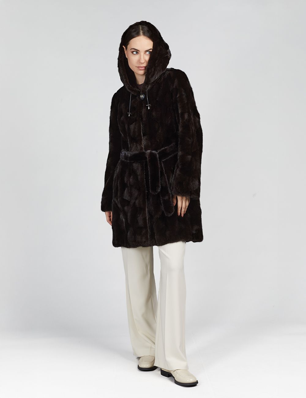 Manteau en cachemire avec détails en mouton noir 110 cm