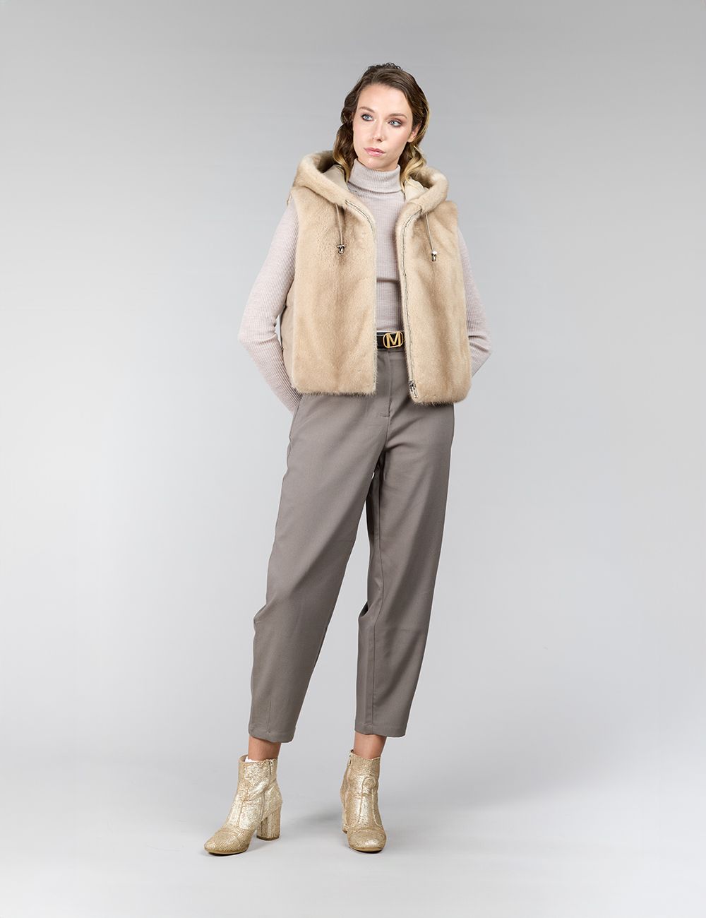 Manteau en peau de mouton réversible avec col anglais gris de 110 cm