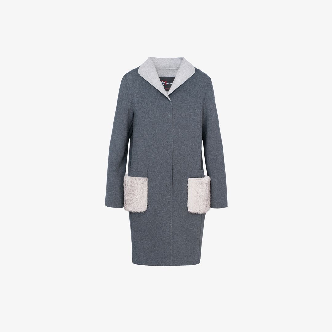 Chiusura a ganci, collo inglese, dettagli in visone, grigio, 80cm