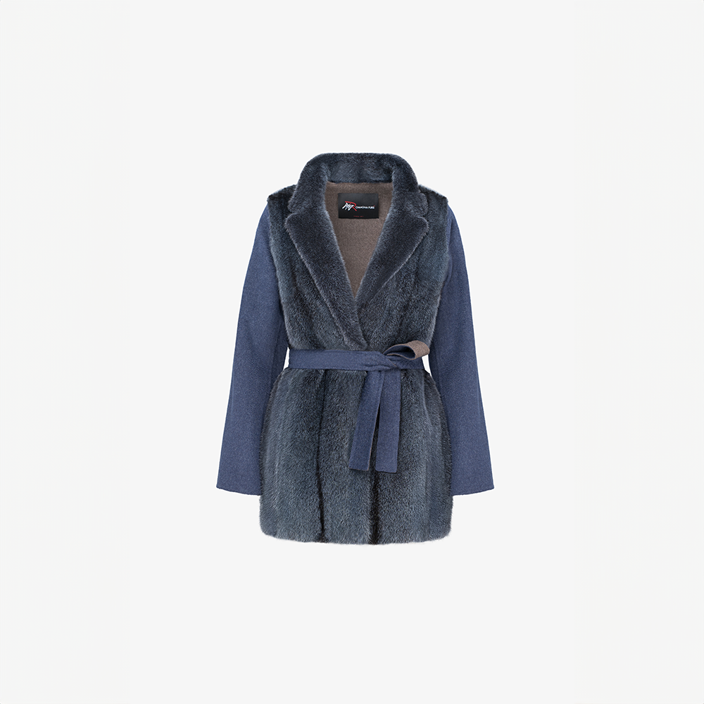 Veste petit gris avec zip et détails en cuir doré 55 cm