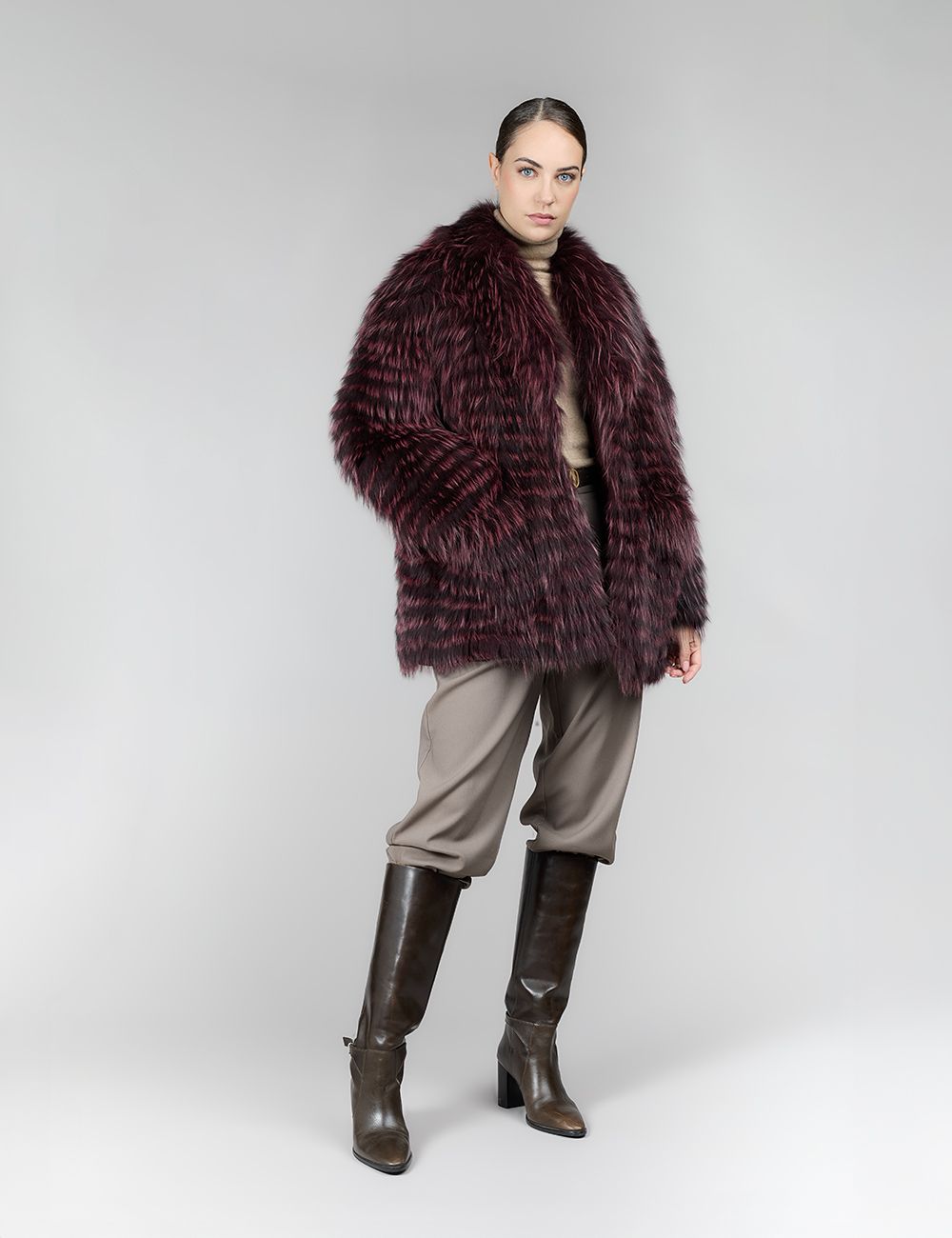 Giacca reversibile con cappuccio in pelliccia di procione, colore pastello, 80 cm