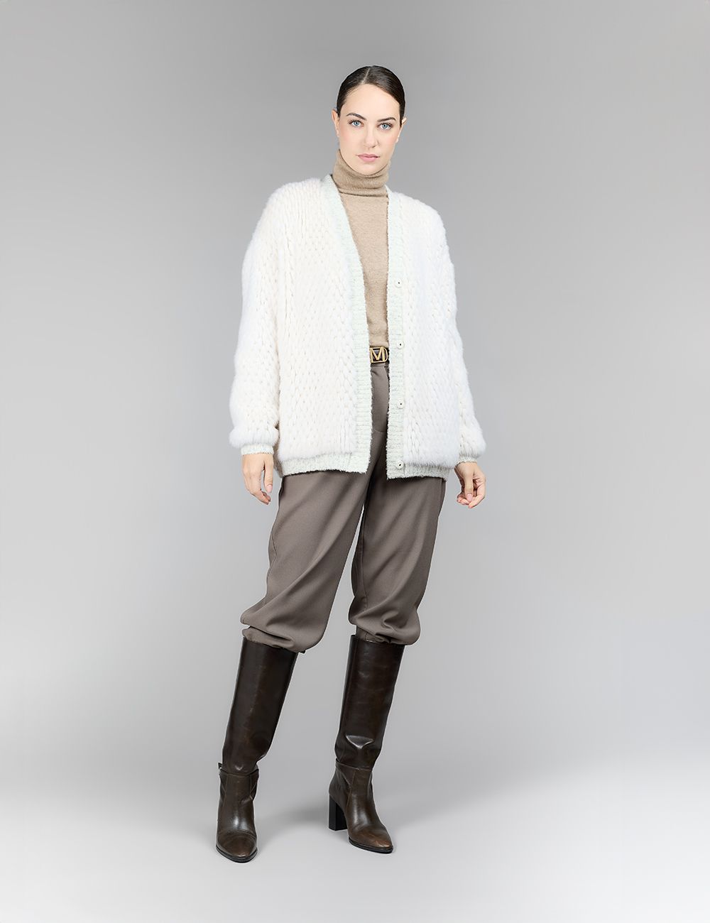 Cardigan en vison, couleur perle, 70 cm