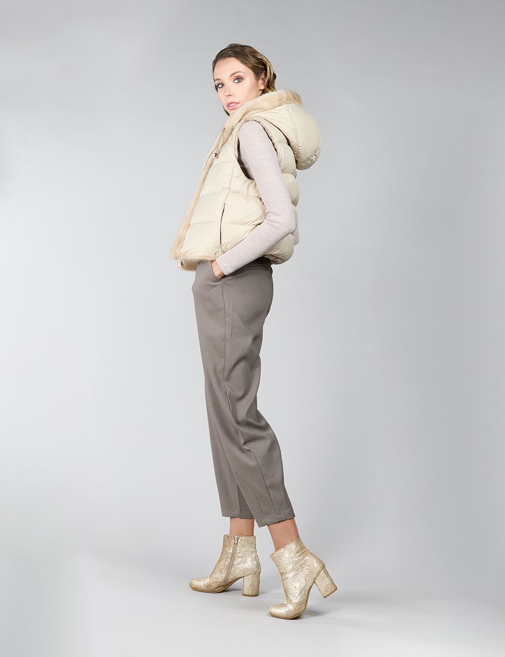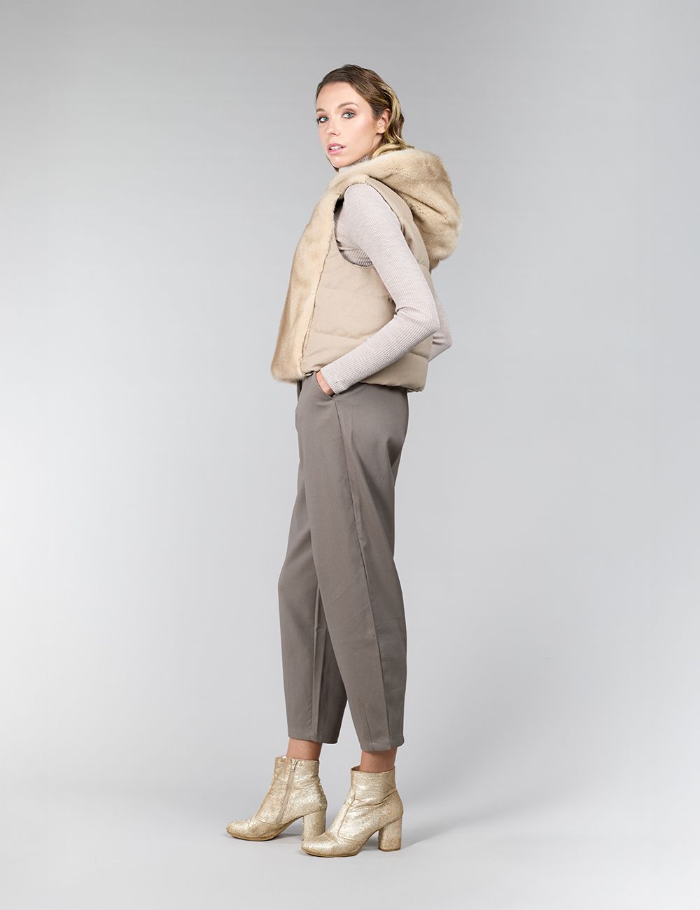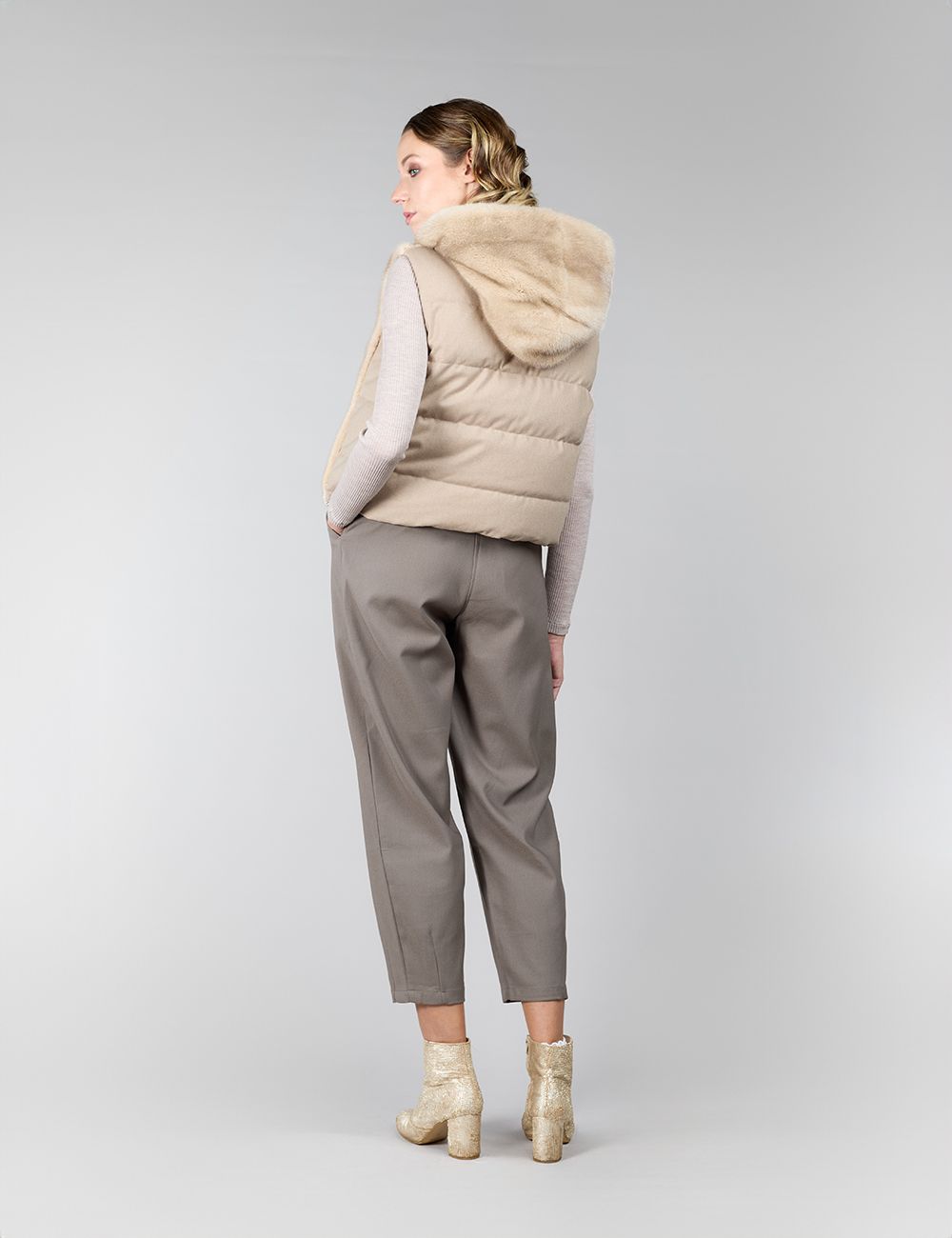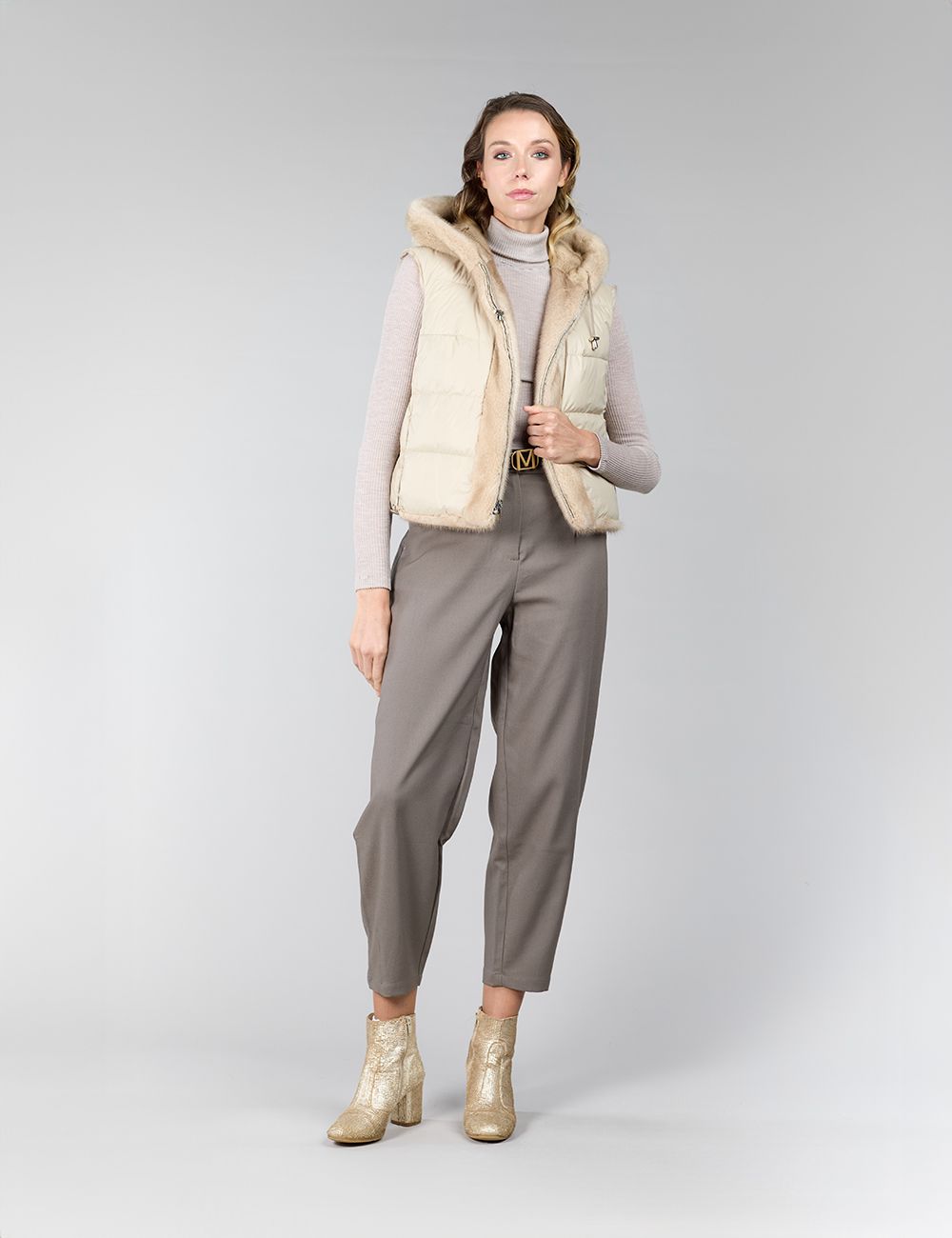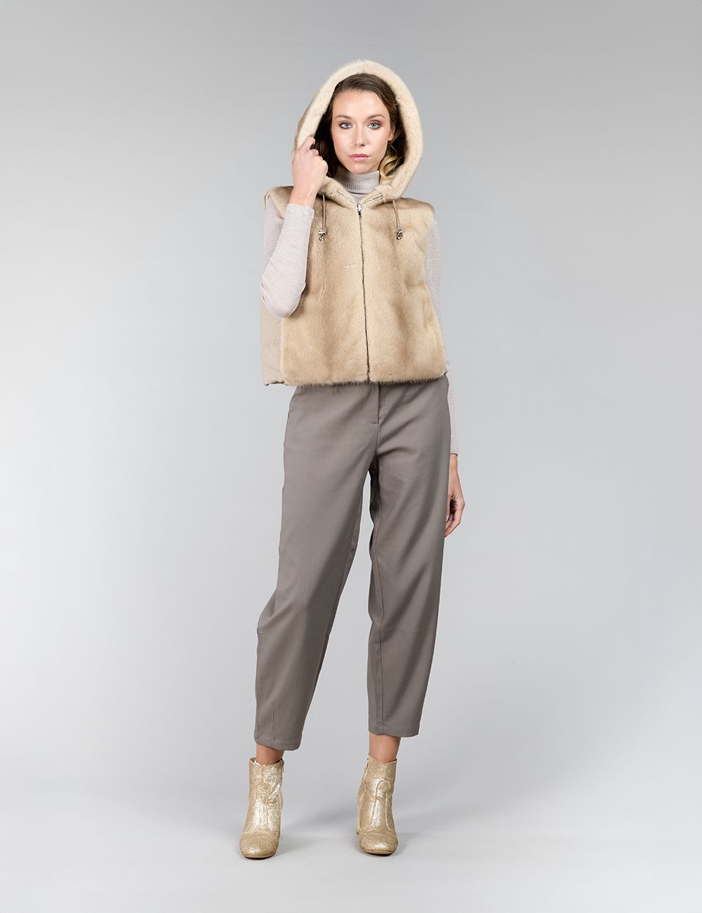 Gilet reversibile in visone, con cappuccio, champagne, 50 cm
