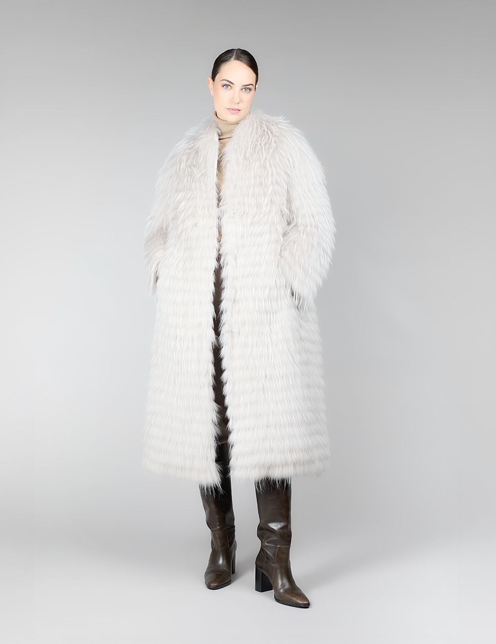 Manteau en vison à coupe droite avec col châle et poches latérales, bleu iris, 105 cm