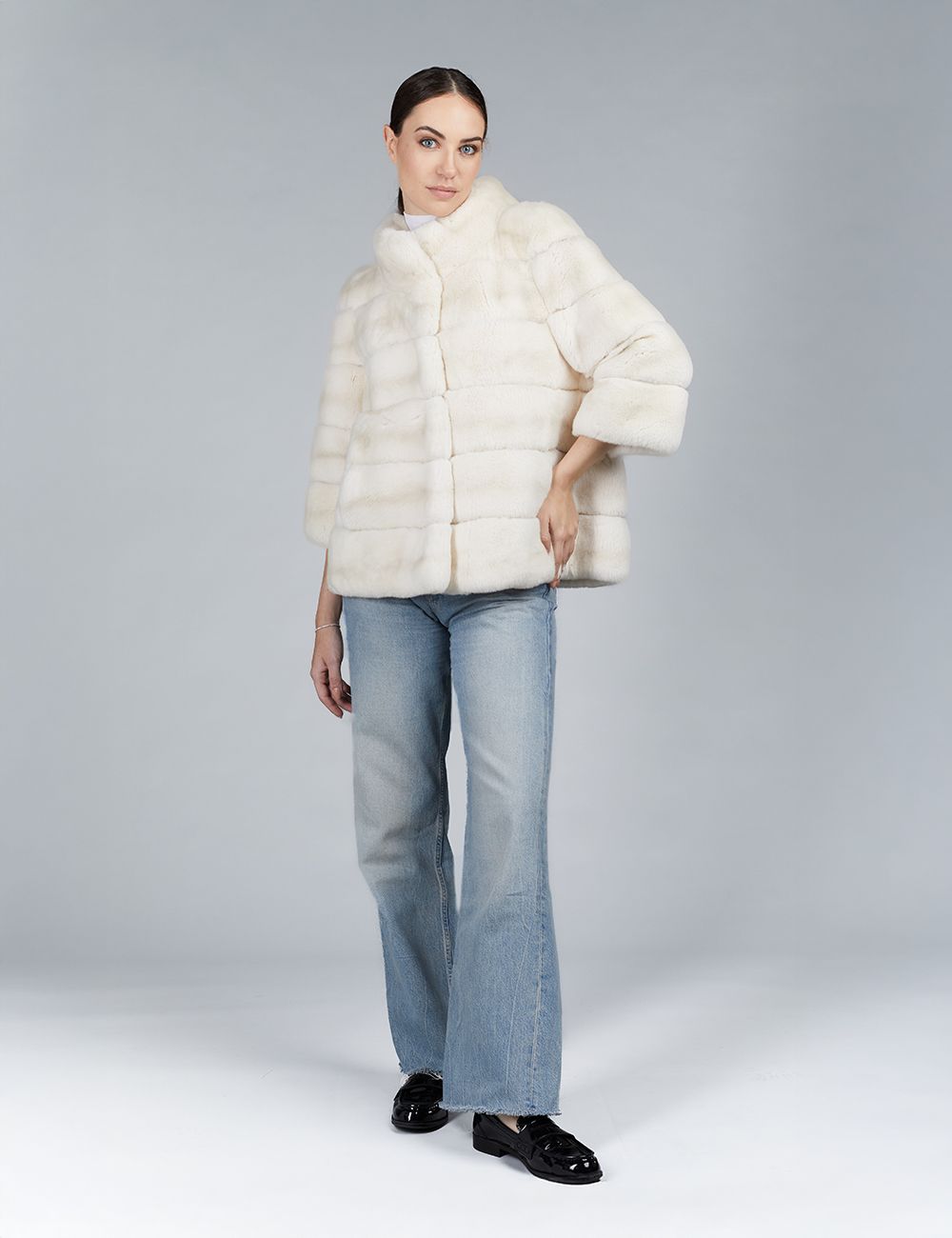 Veste en vison oversize en cuir intégral palomino de 70 cm.