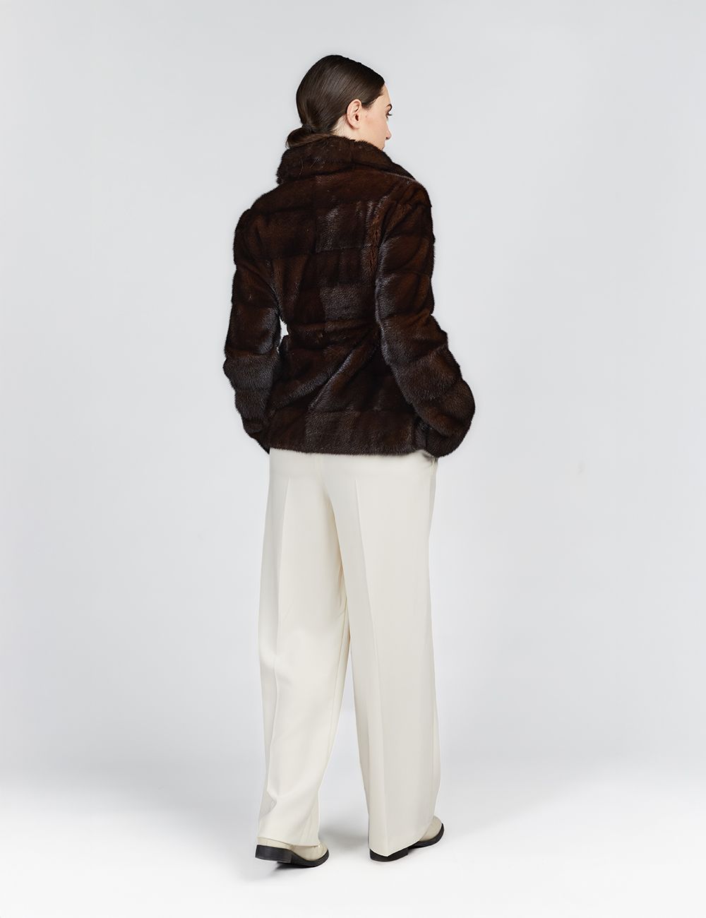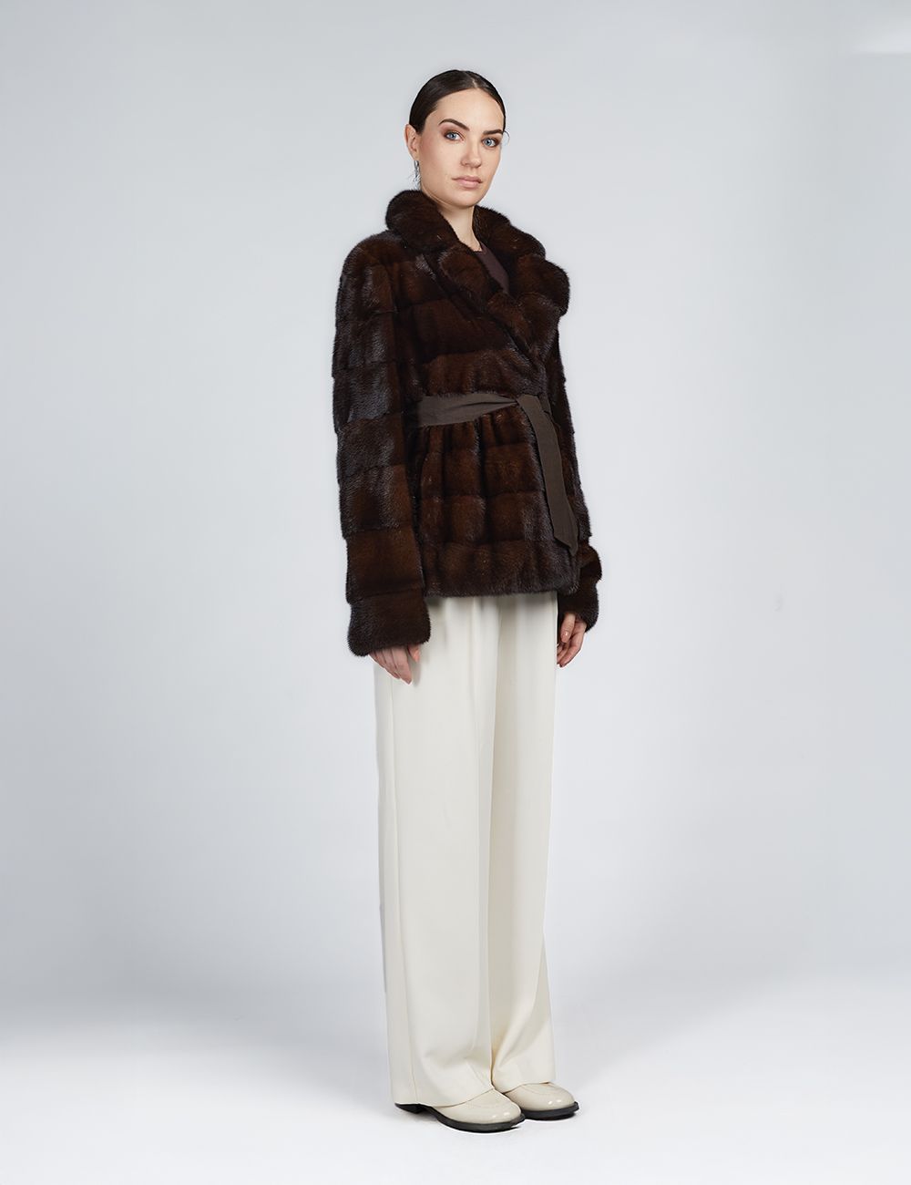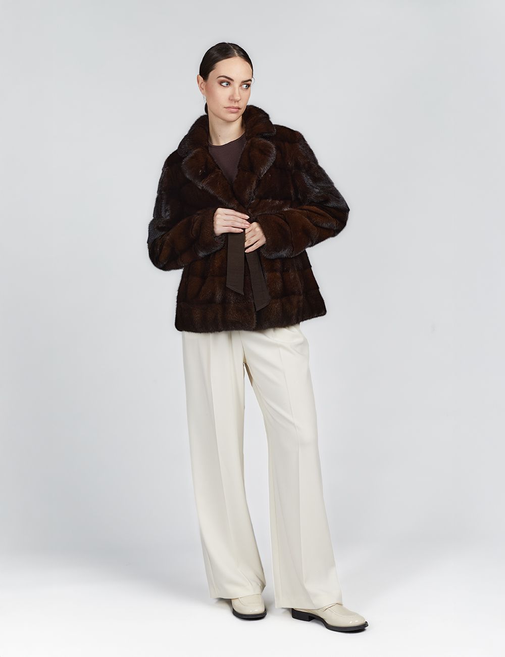 Veste courte avec ceinture et col anglais en acajou de 65cm.