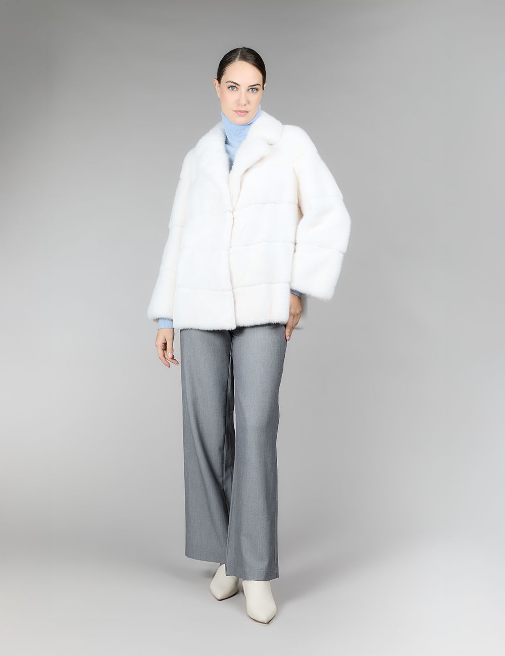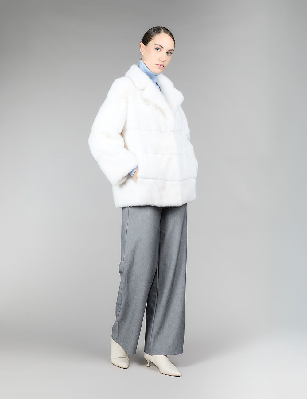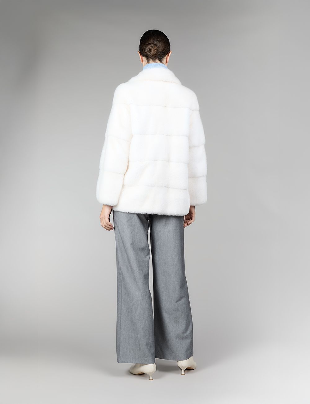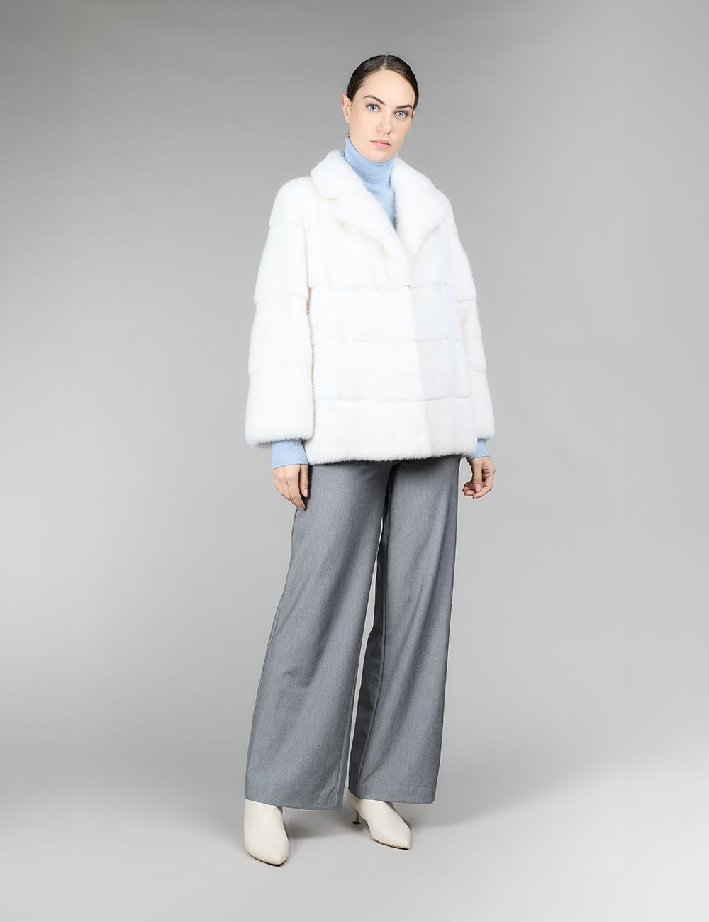 Giacca di visone over, collo inglese, bianco, 70 cm