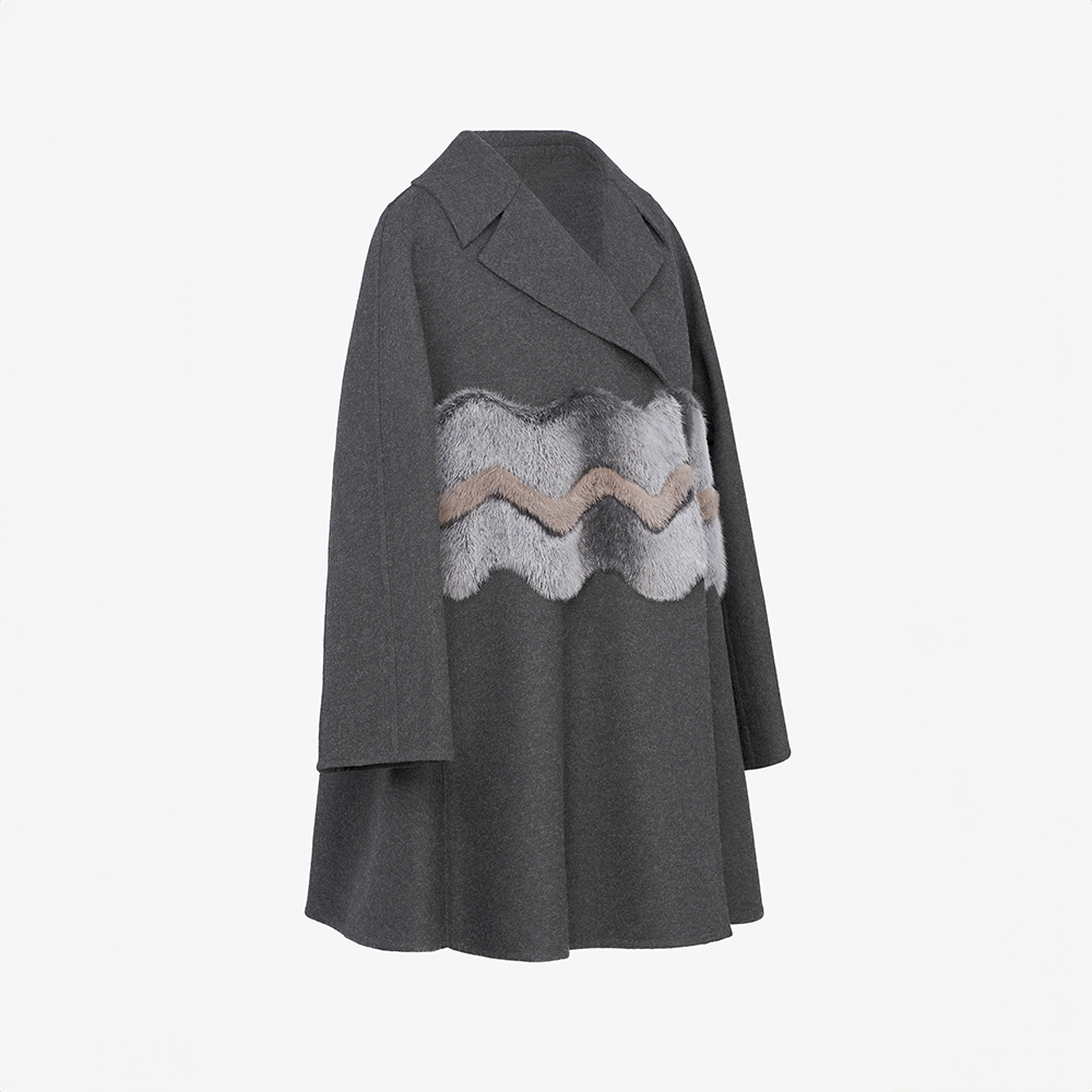 Cappotto ampio in cashmere con dettagli in visone grigio scuro 80 cm