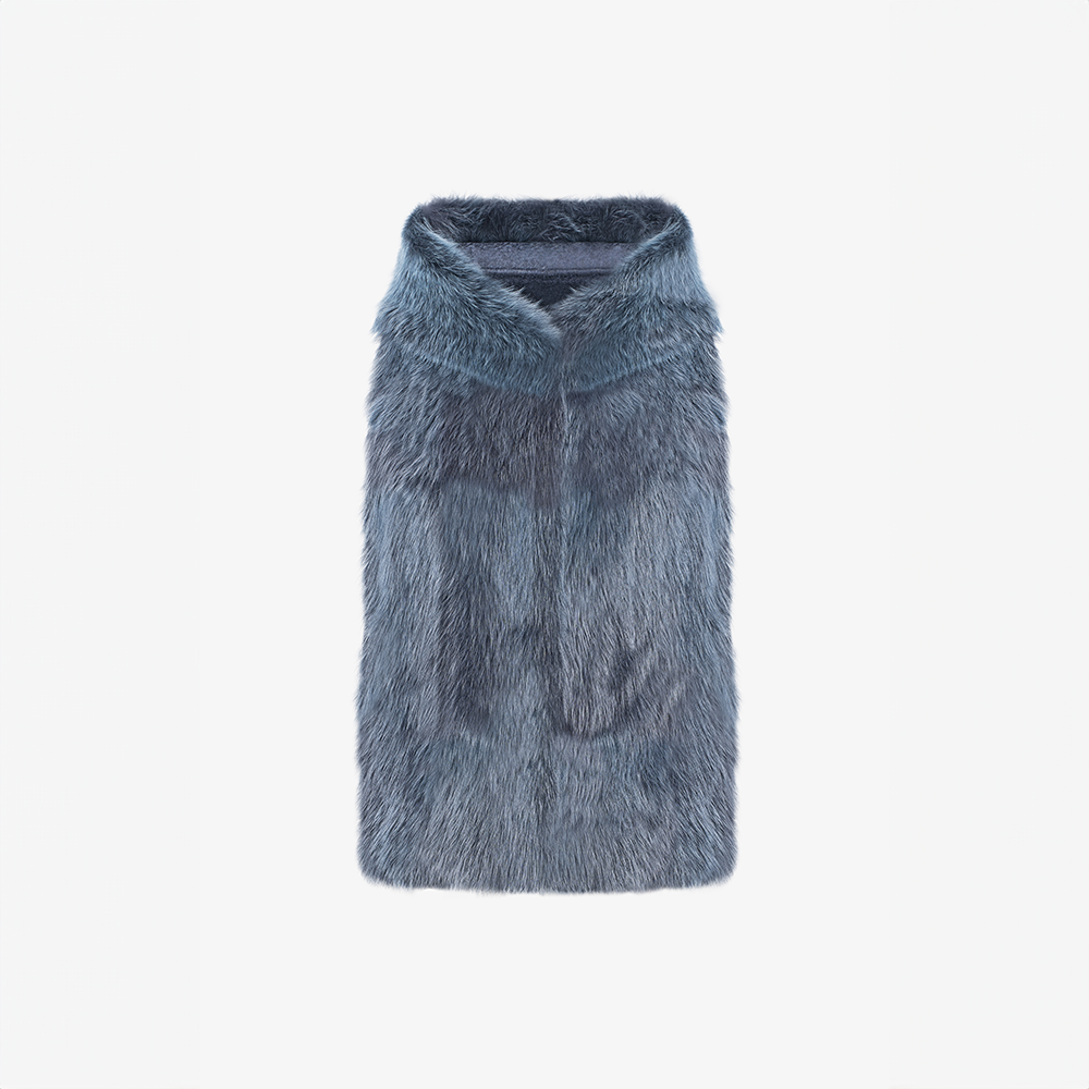 Giacca corta di linciotto con collo ampio naturale 45 cm