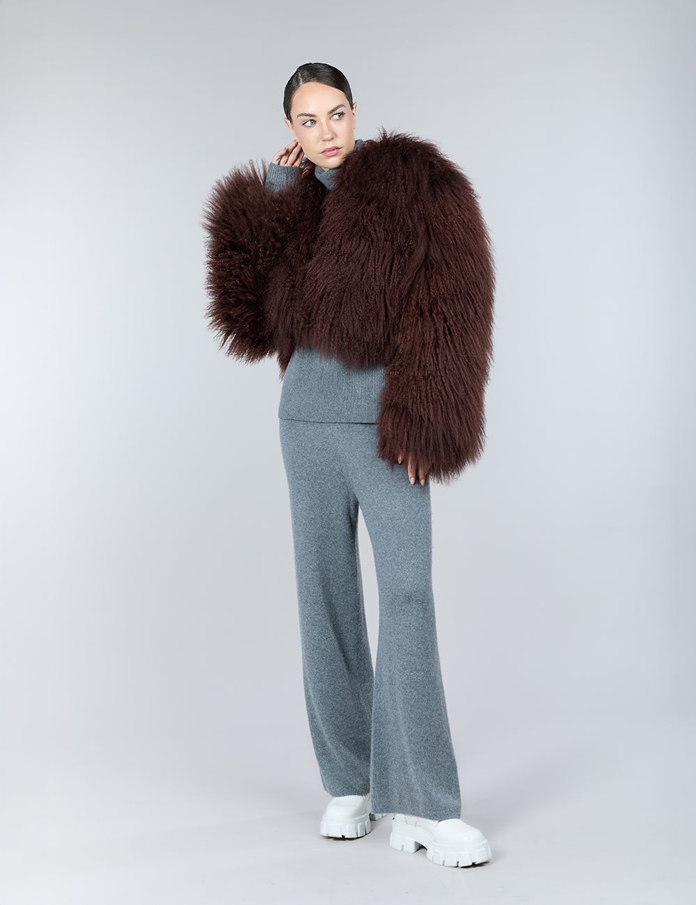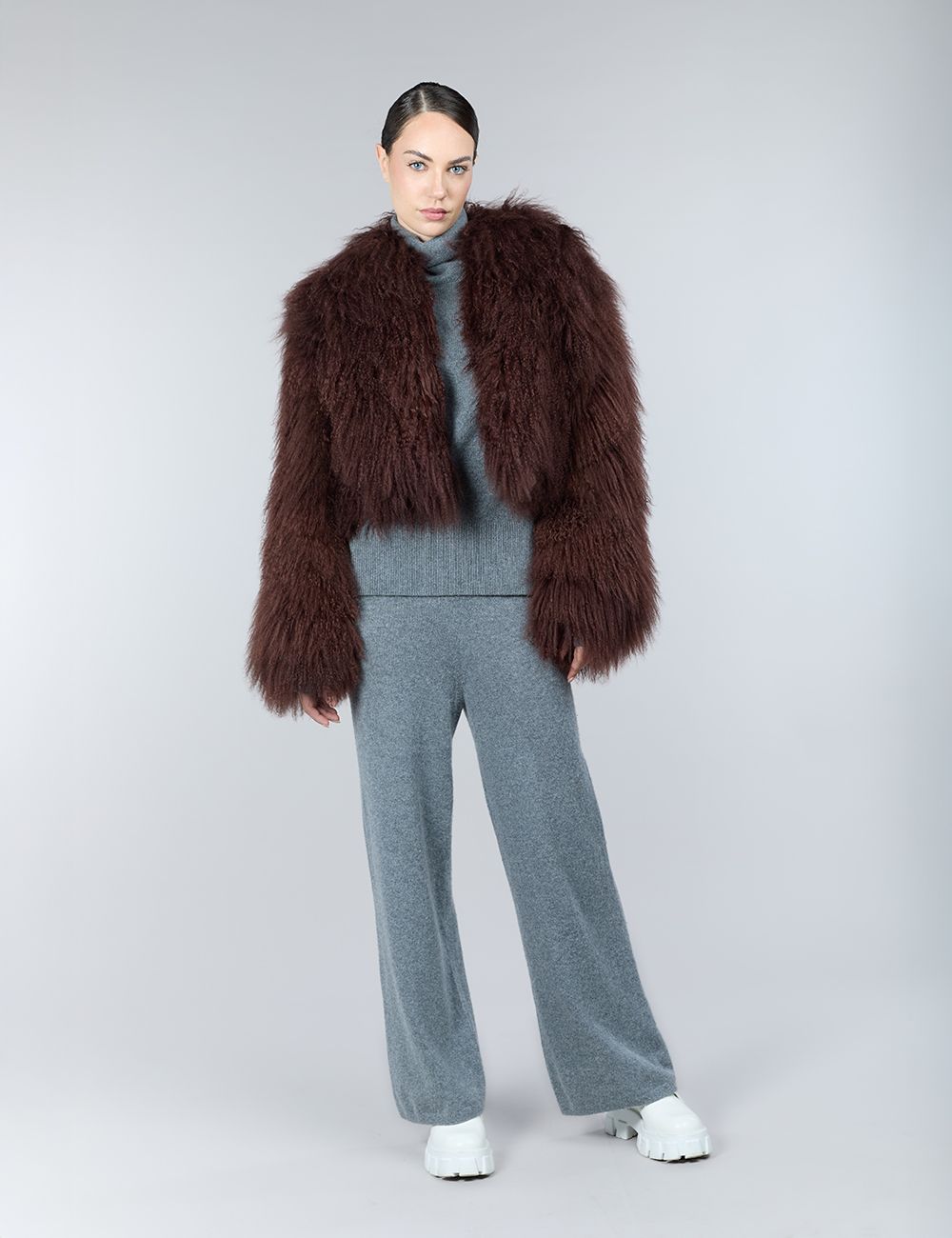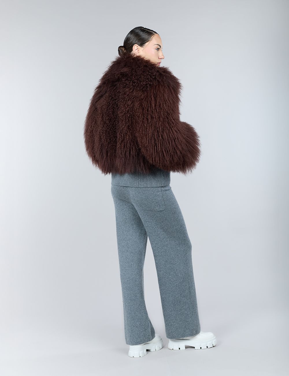 Bomber crop in pelliccia mongolia bordeaux 45 cm