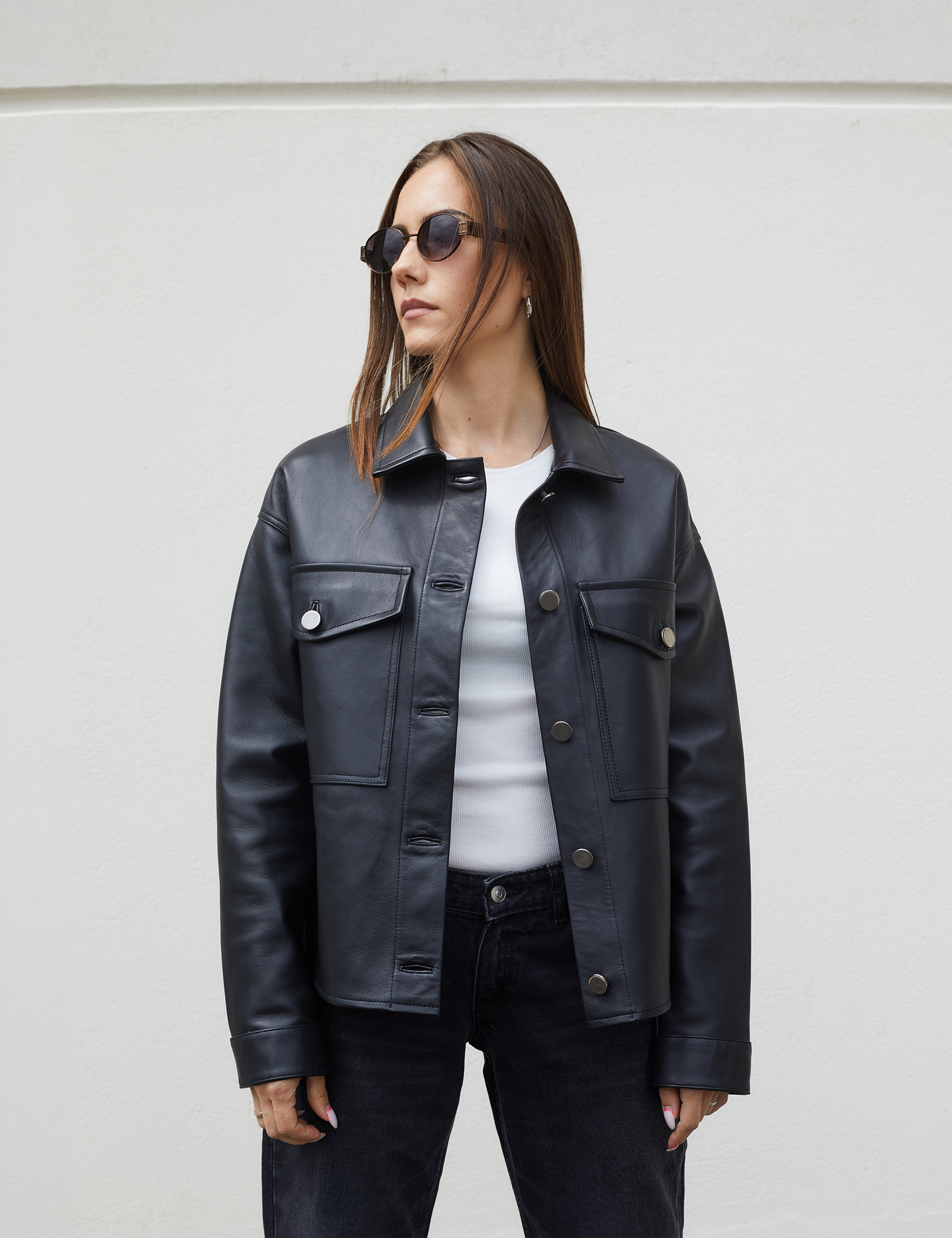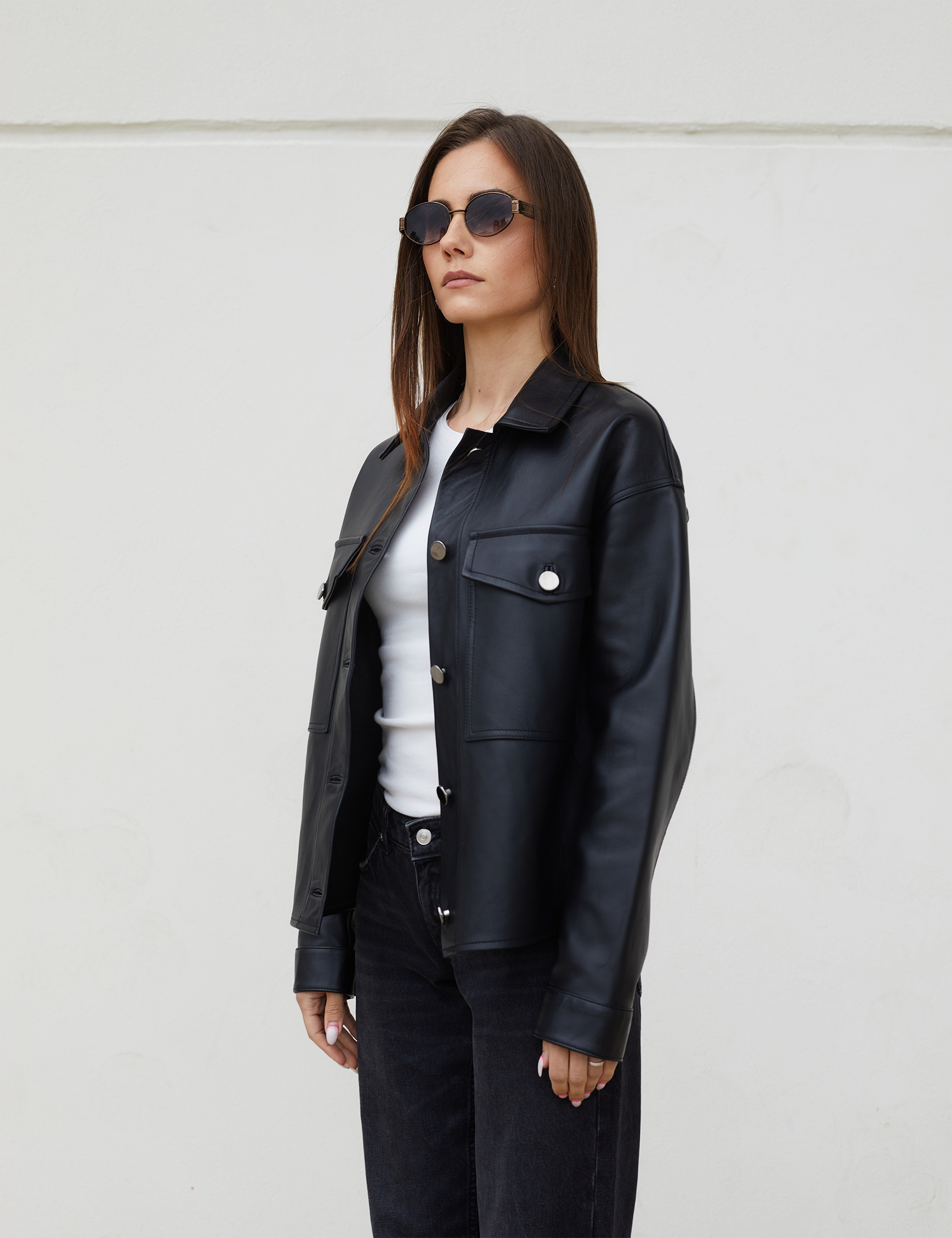 Camicia di pelle, chiusura con bottoni, regular fit, nero, 60 cm