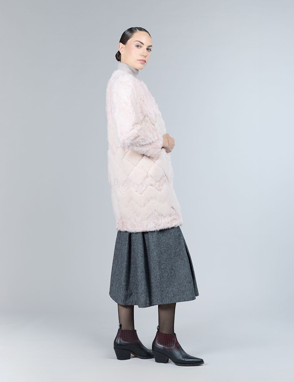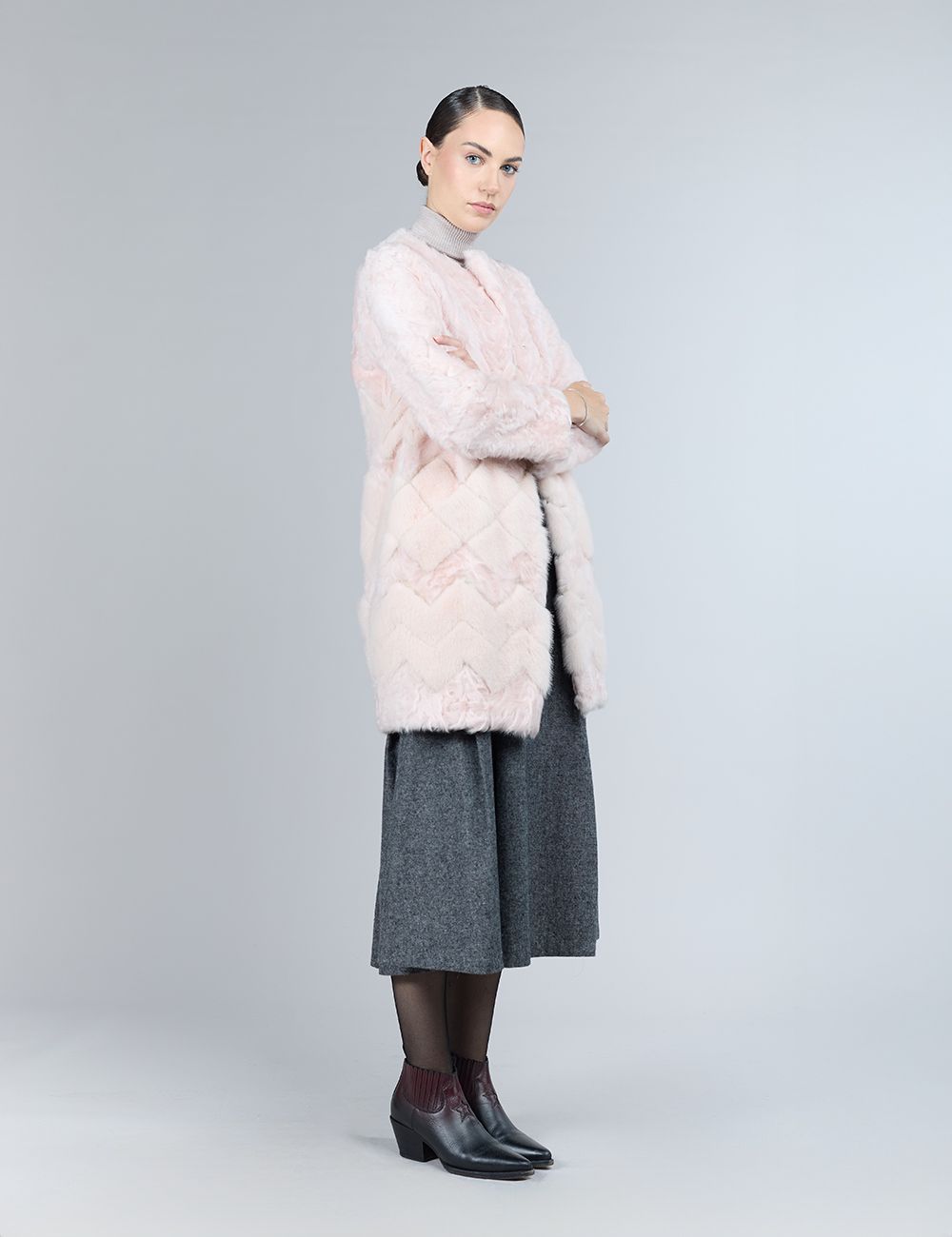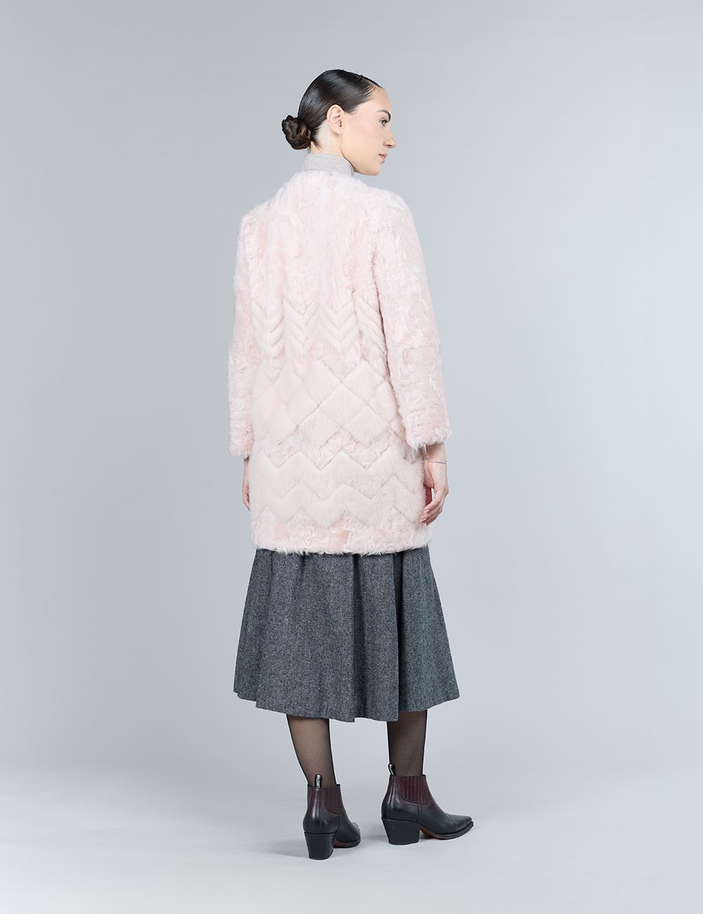 Cappotto in lamb skin con lavorazione a zig-zag in visone, ghiaccio, 100 cm