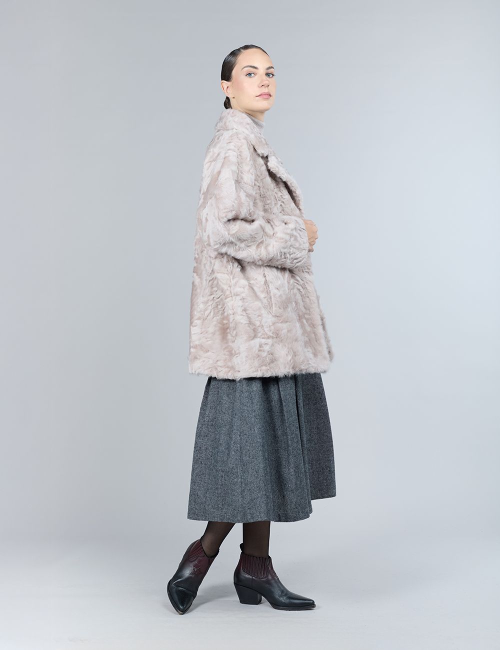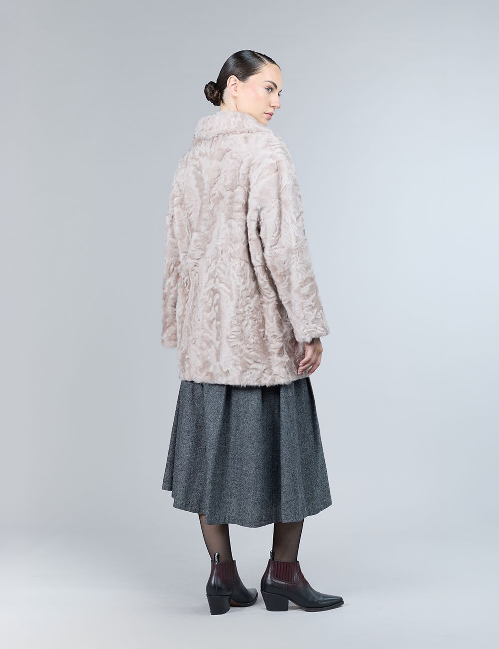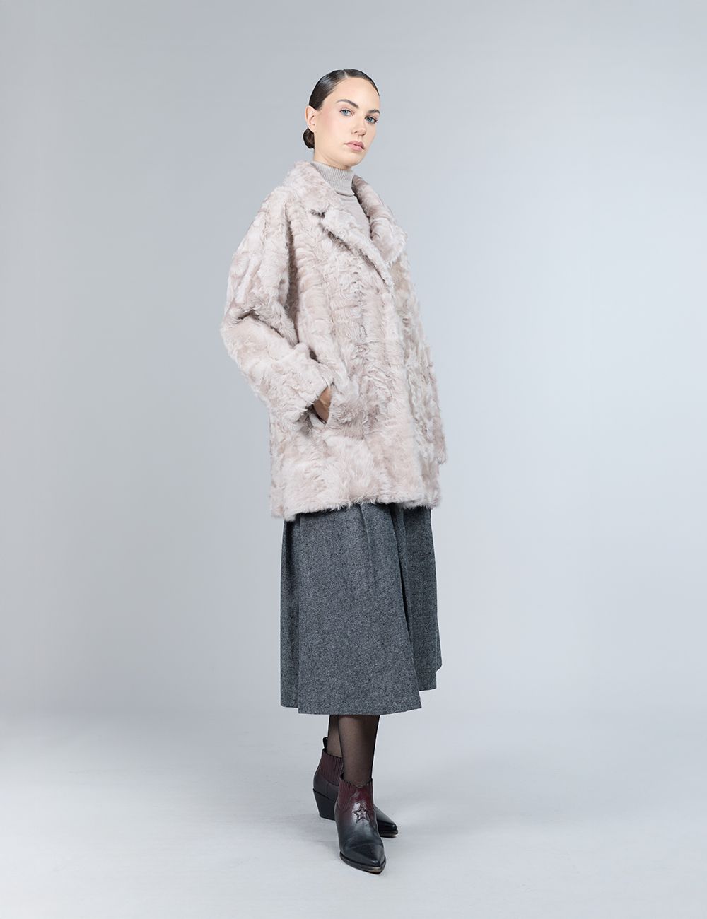 Cappotto in lambskin con collo inglese, cipria, 80 cm