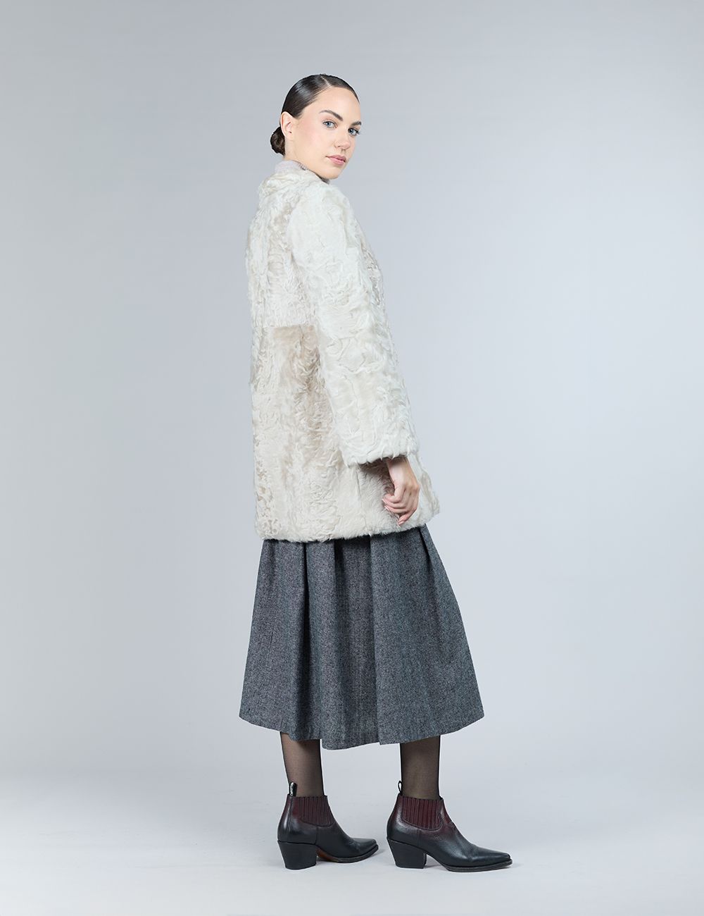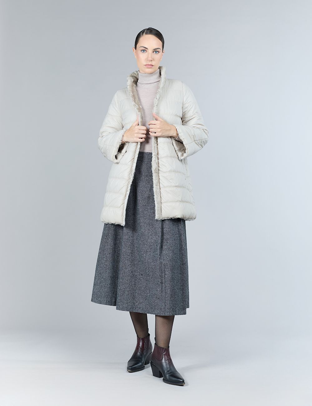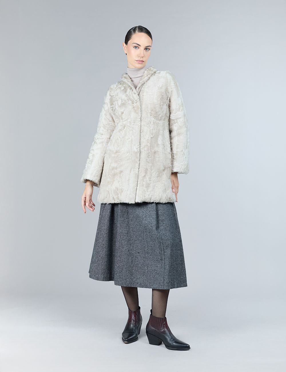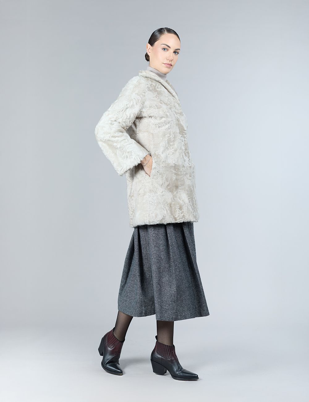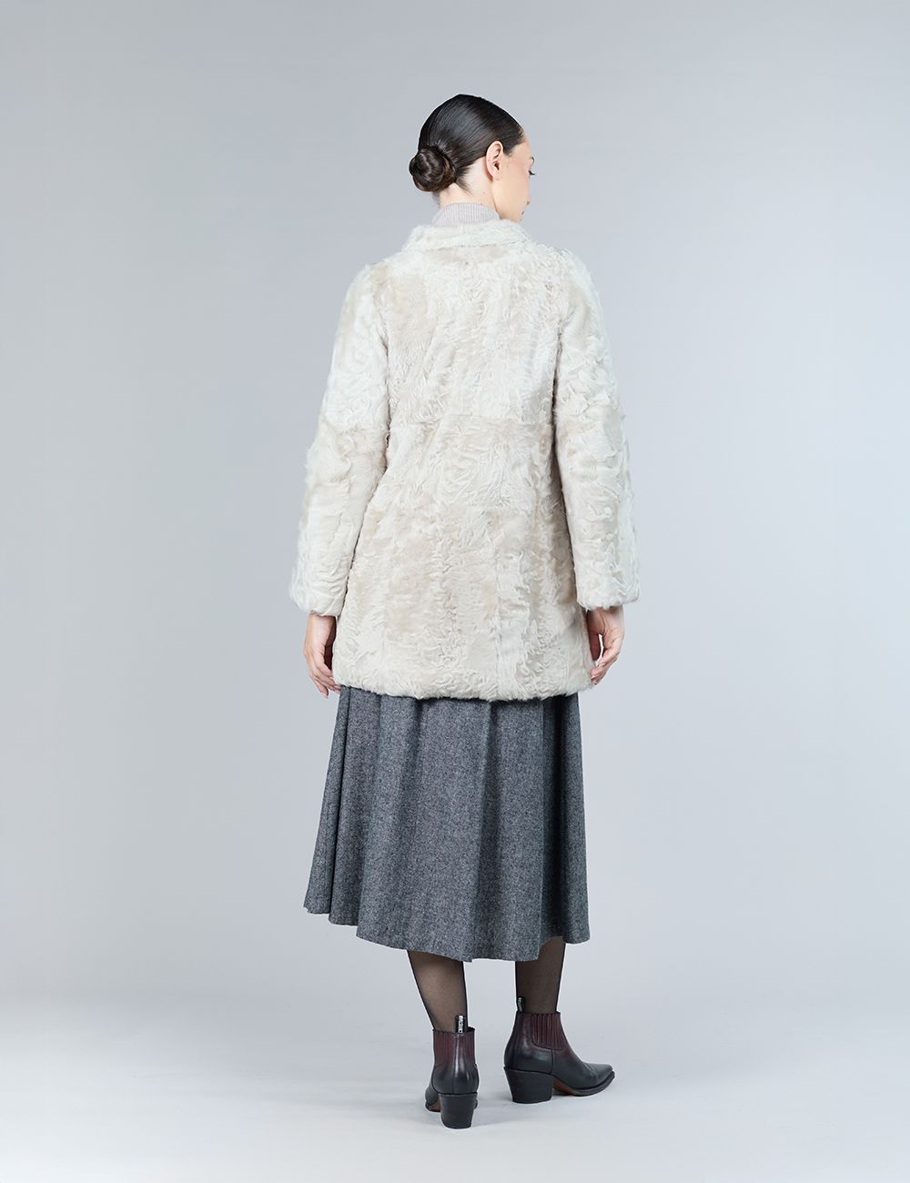 Cappotto reversibile in lamb skin con intarsi in visone, rosa chiaro, 90 cm