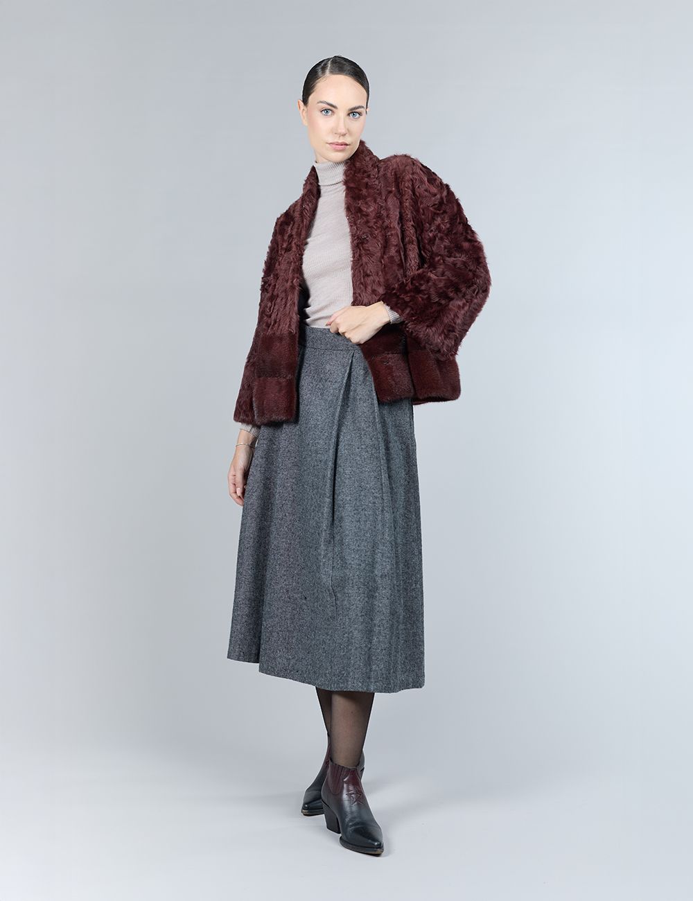Giacca in lamb skin con inserti in visone, bordeaux, 60 cm