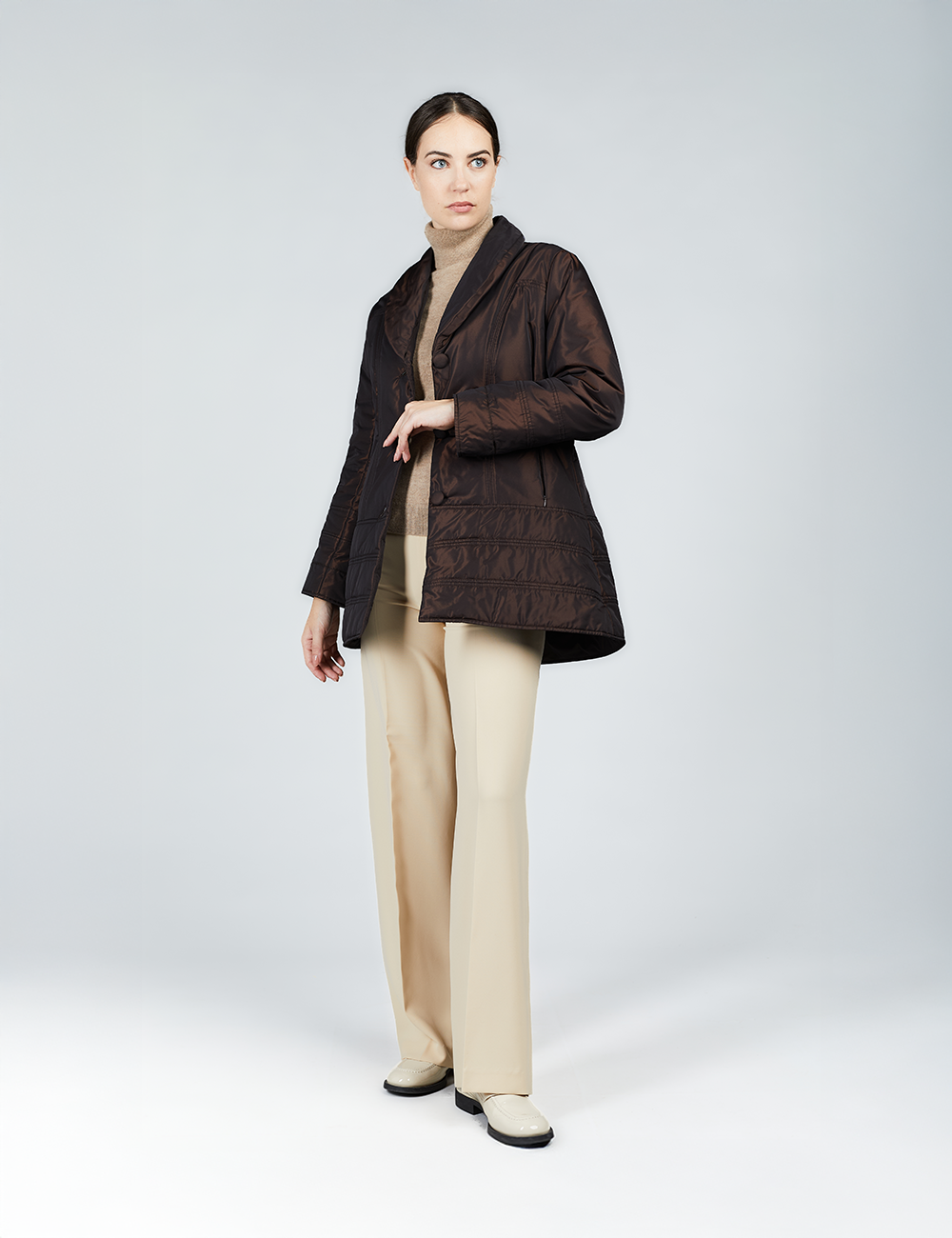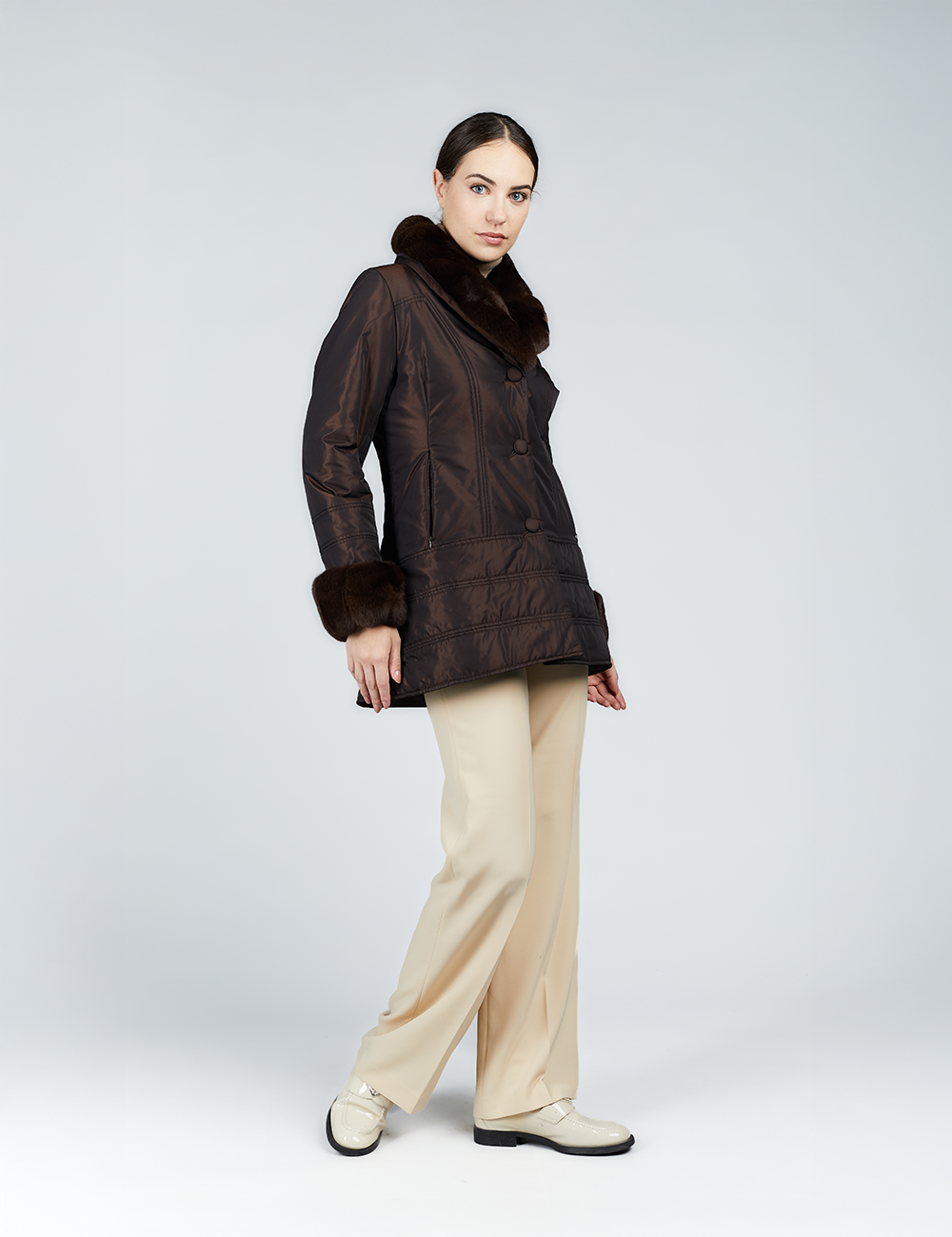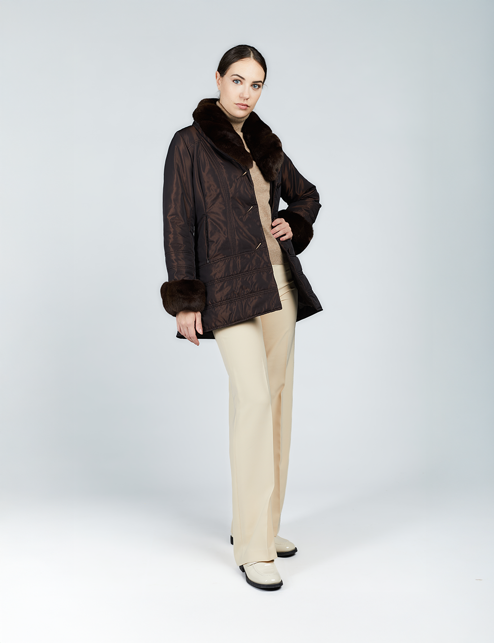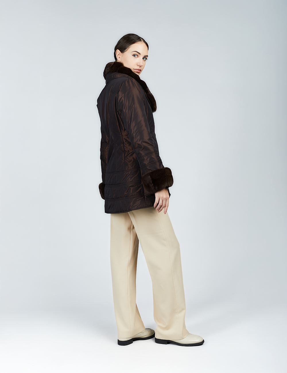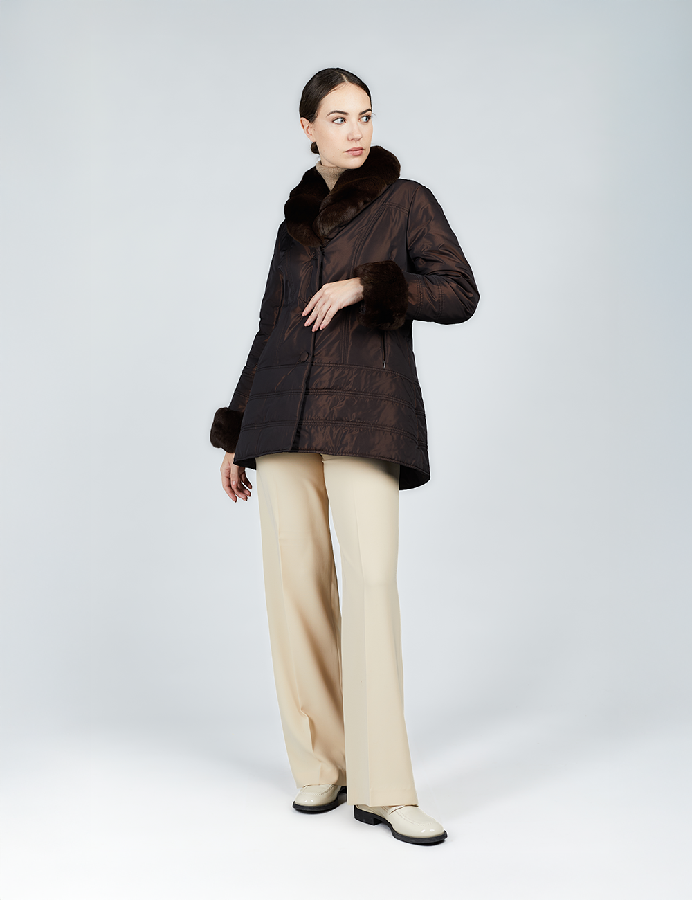 Piumino con collo e polsini staccabili in cincillà marrone 80 cm