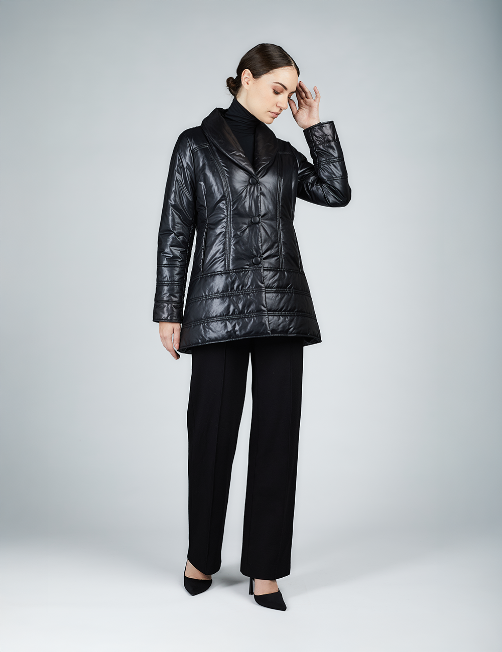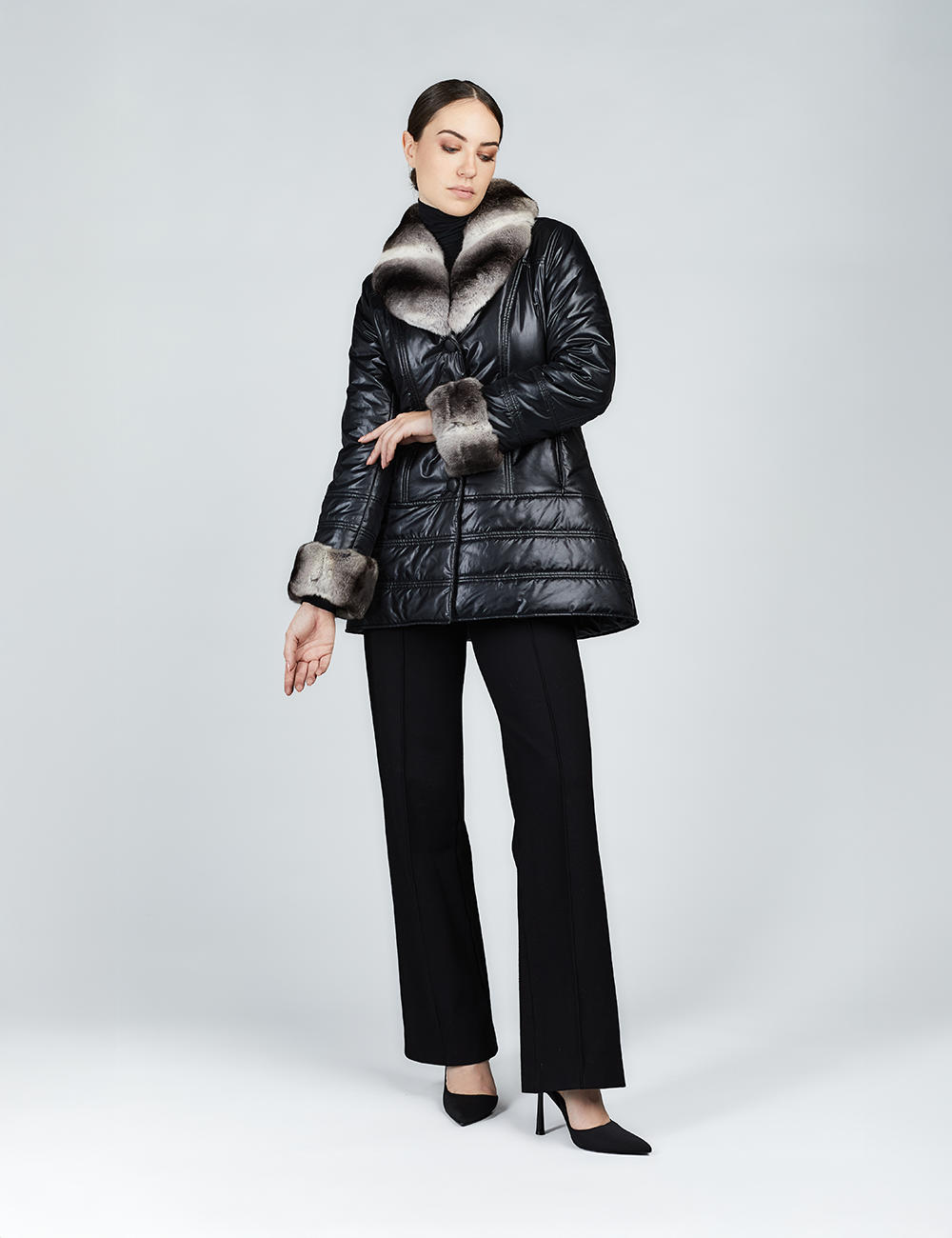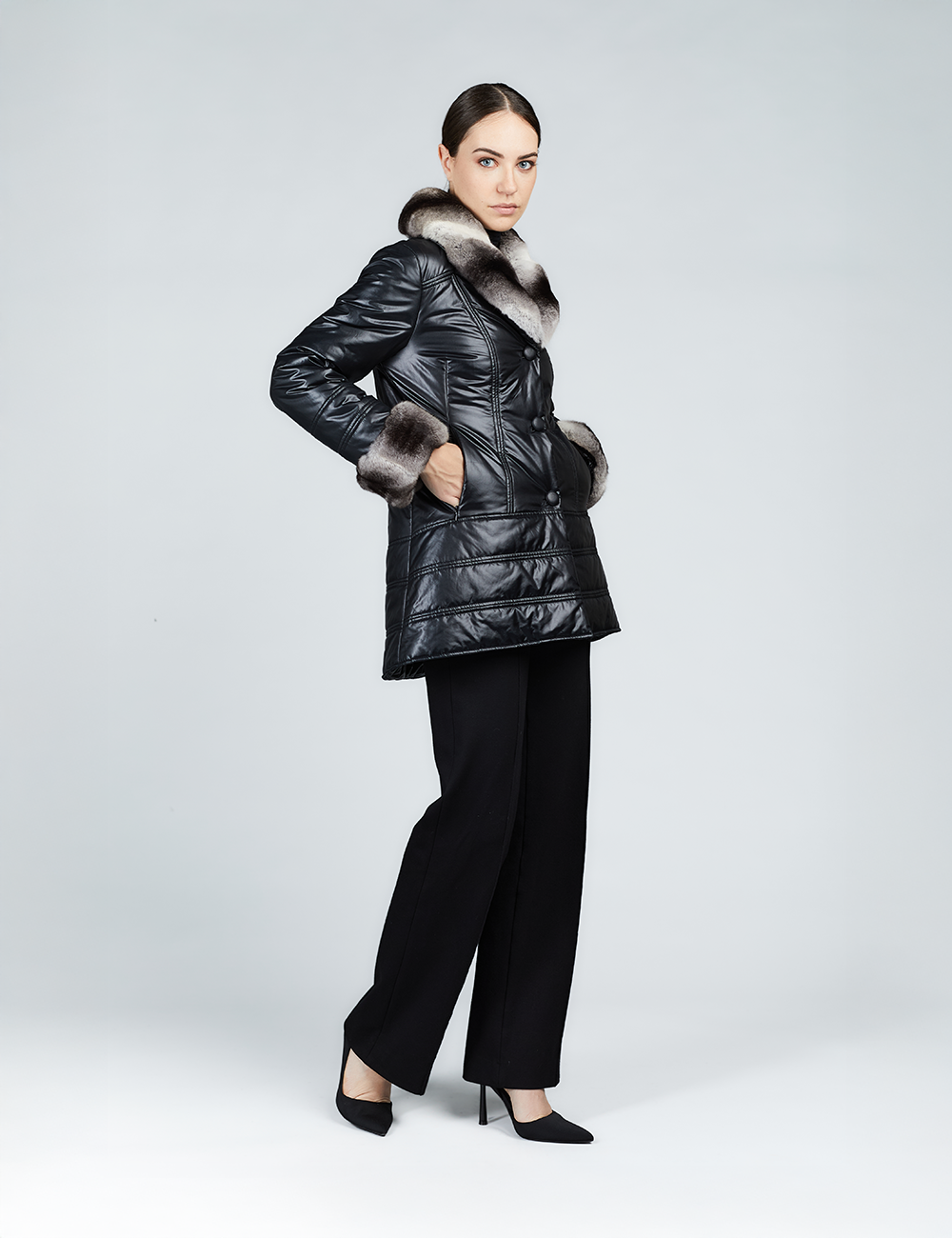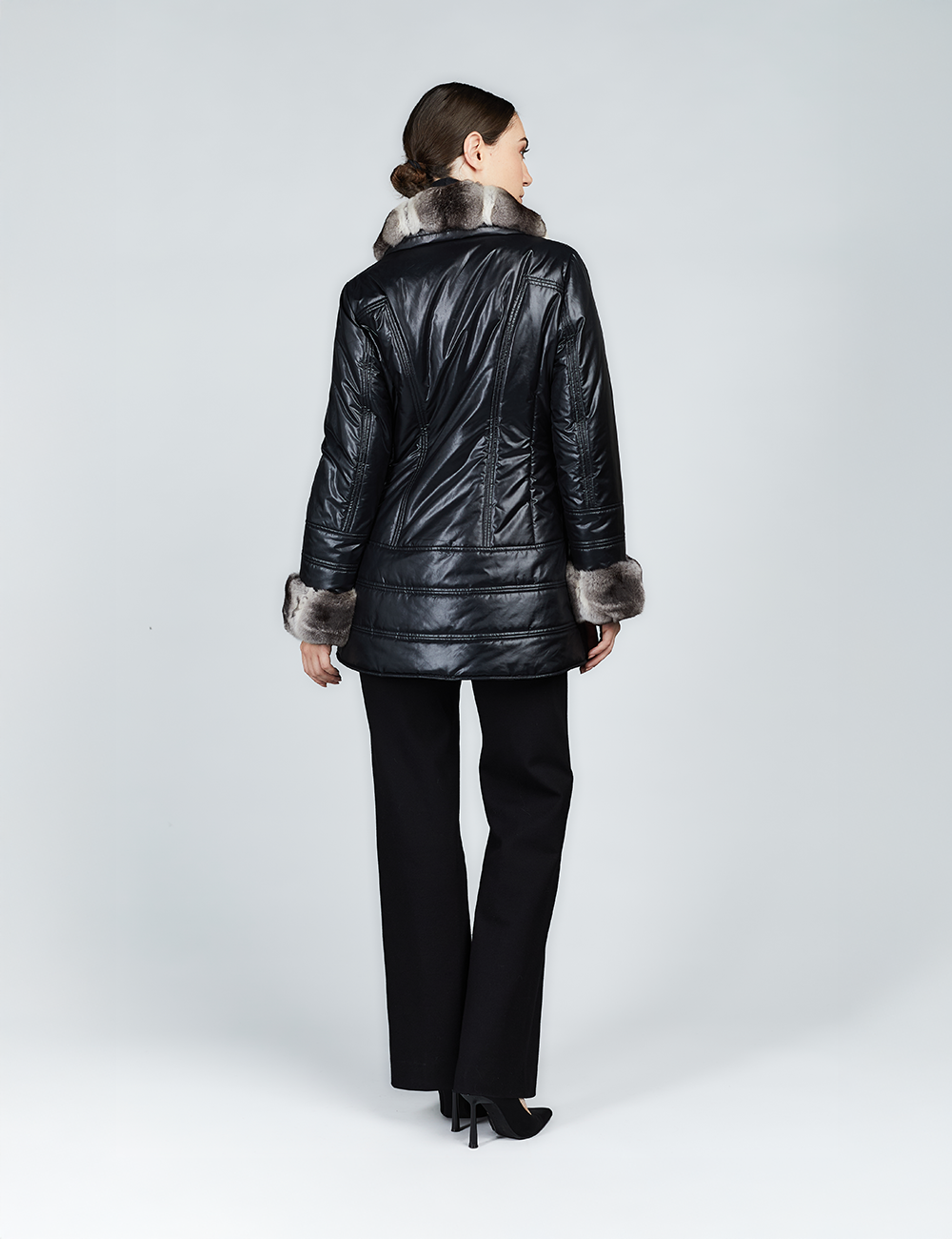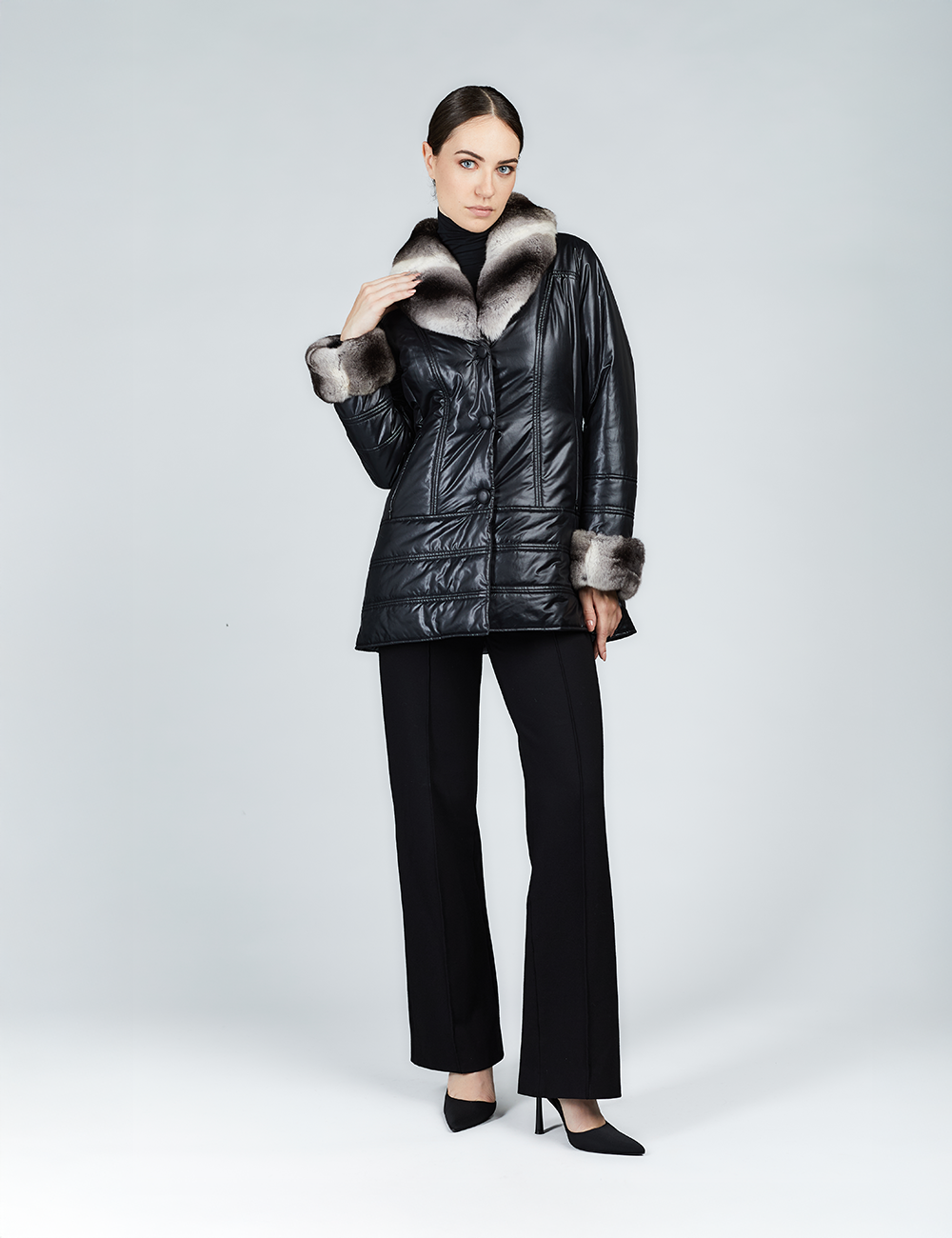 Piumino con collo e polsini staccabili in cincillà nero 80 cm