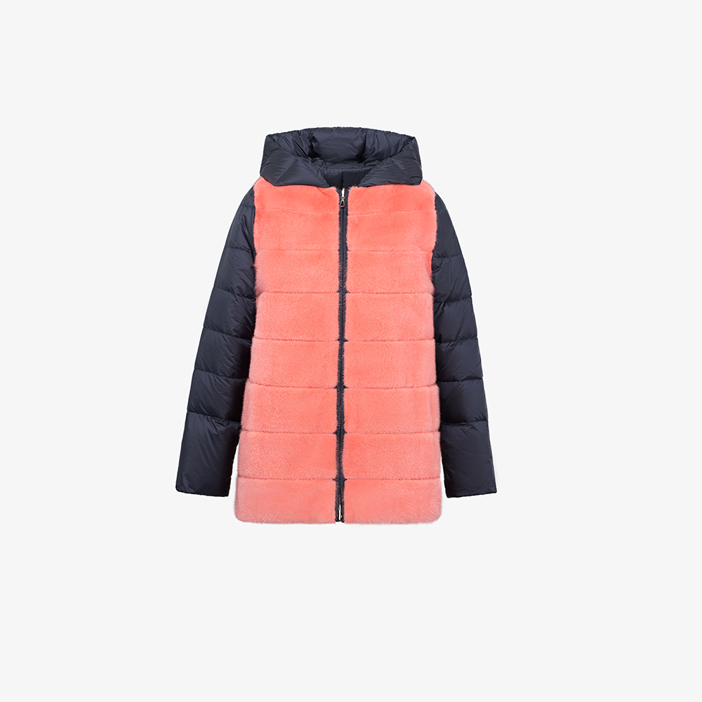 Piumino reversibile in visone con cappuccio rosa 75 cm