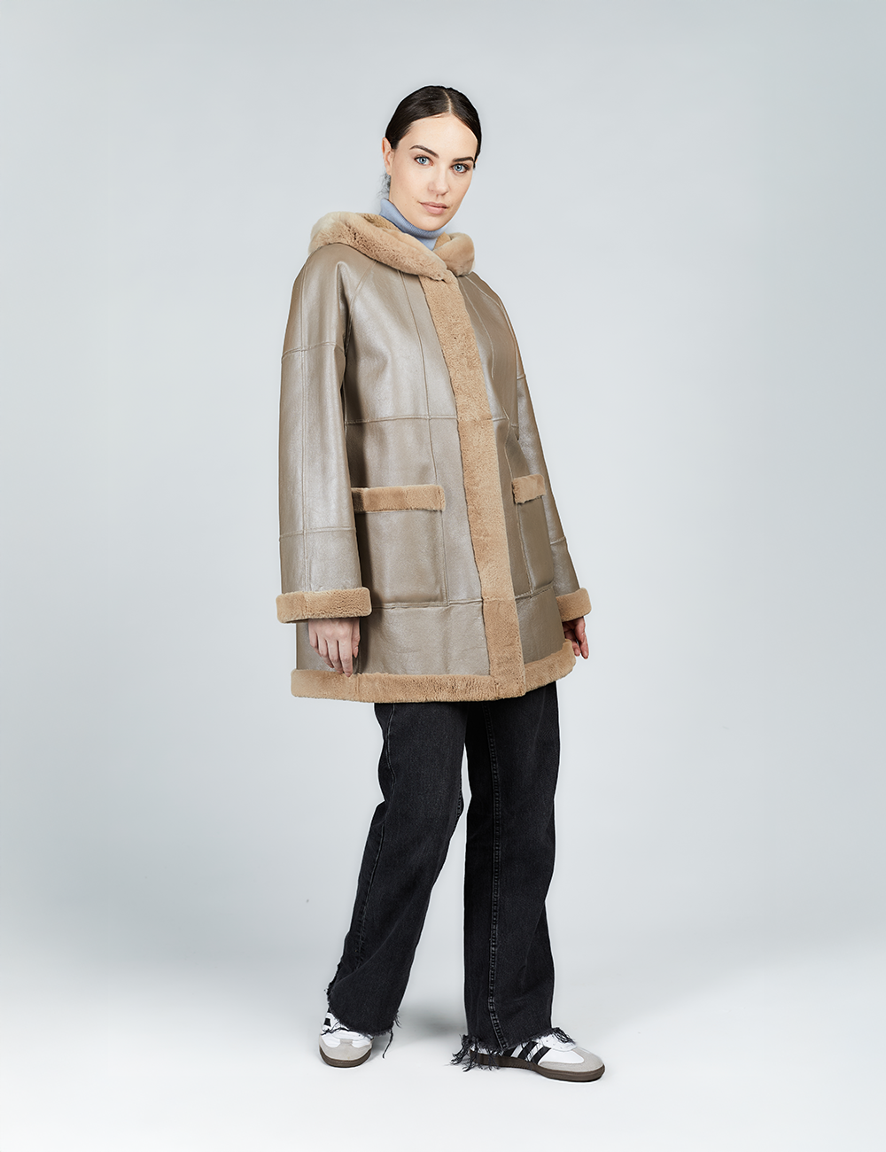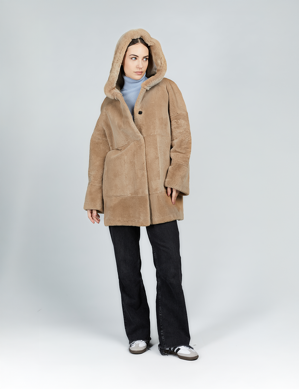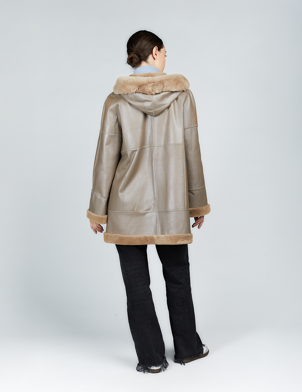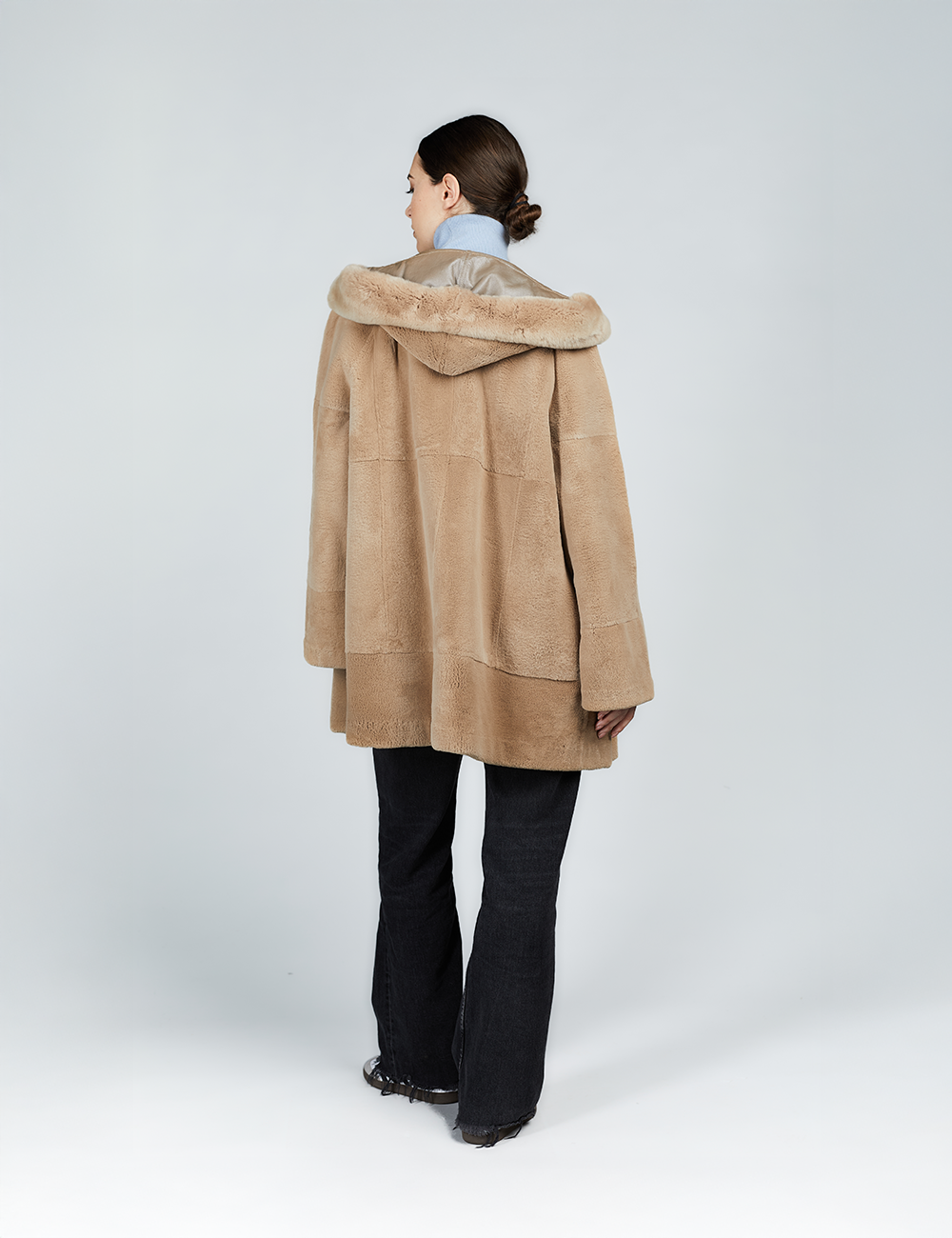 Cappotto in rex reversibile con cappuccio pastello 80 cm