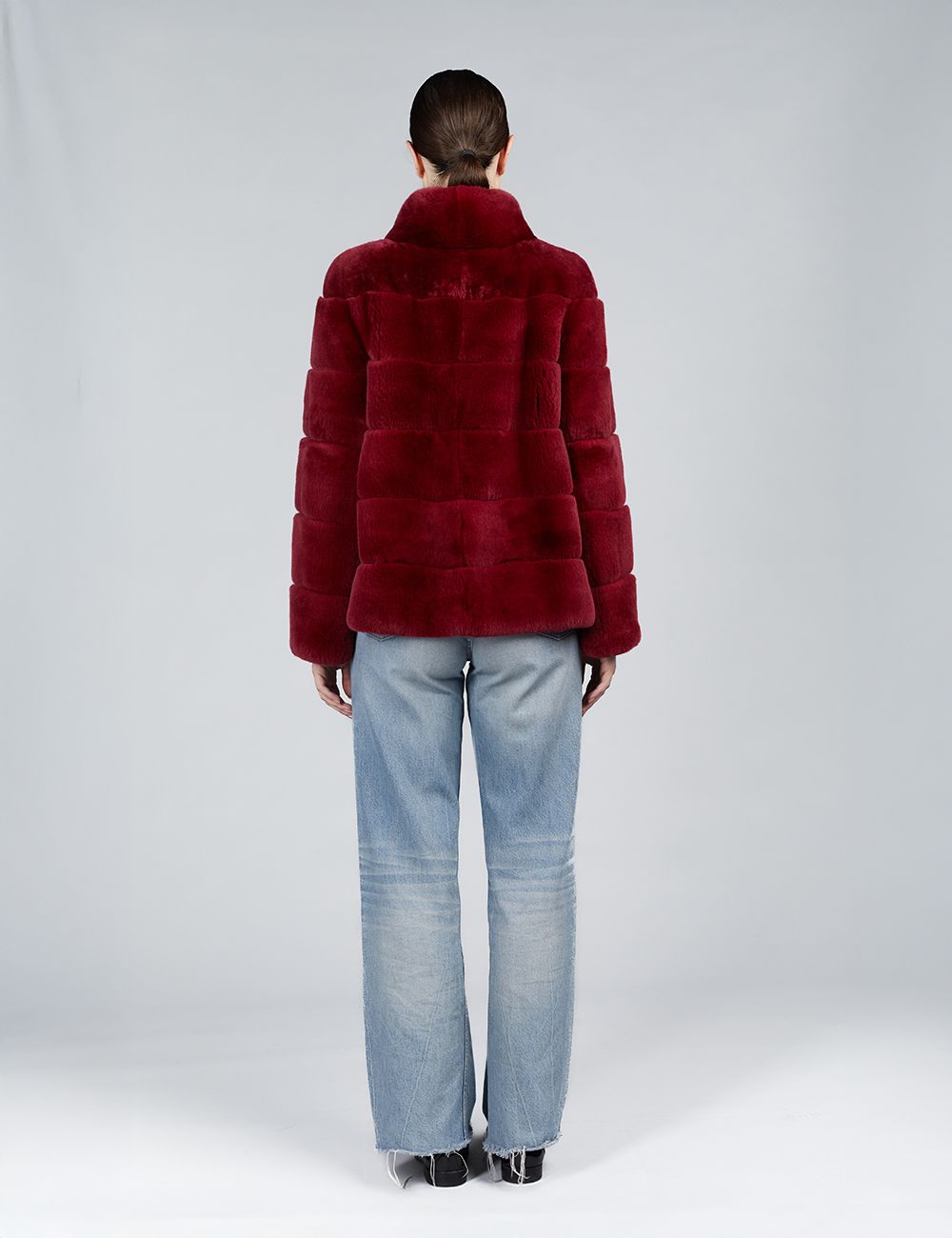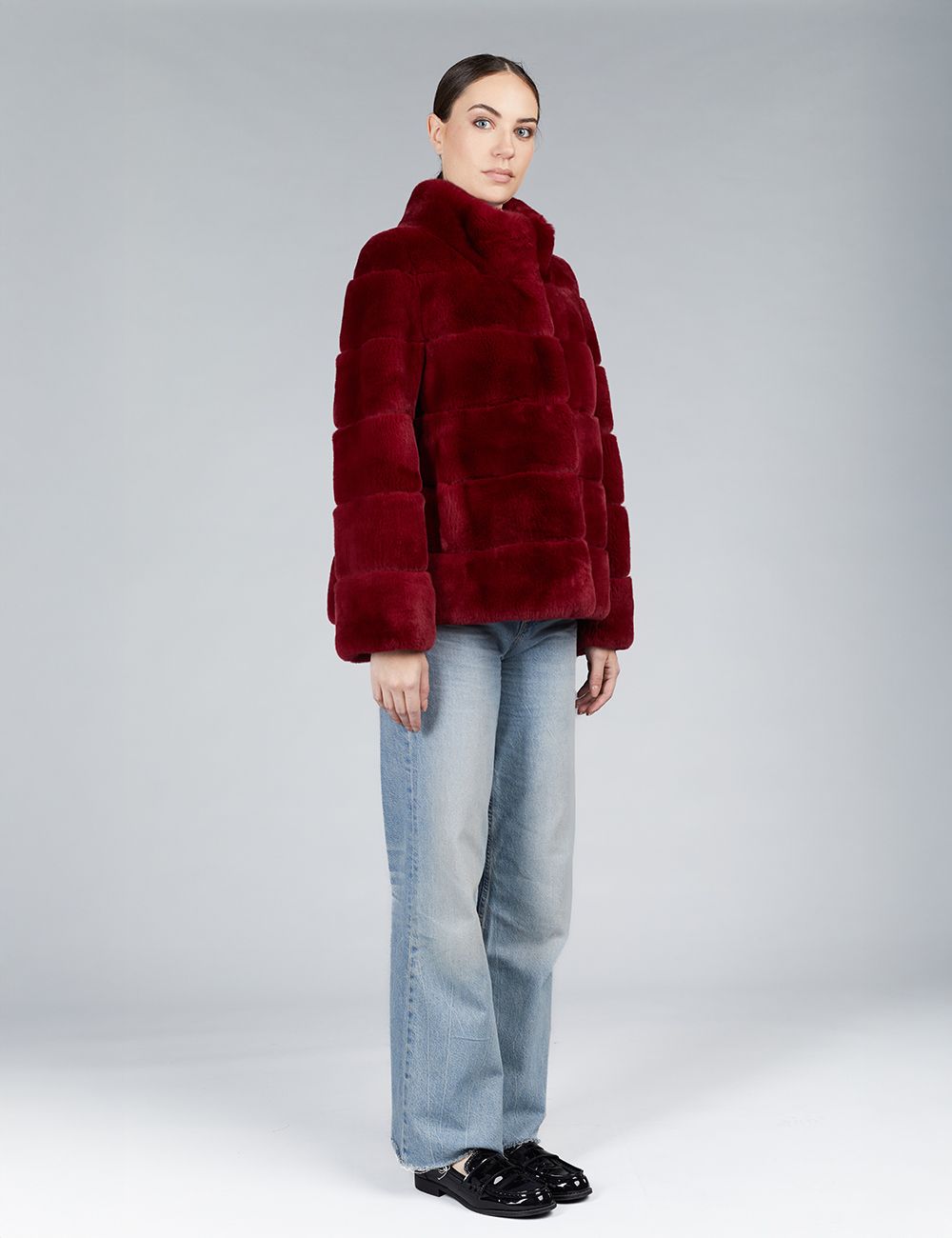 Giacca in rex, collo alto, lavorazione orizzontale, chiusura a ganci,rosso, 60cm